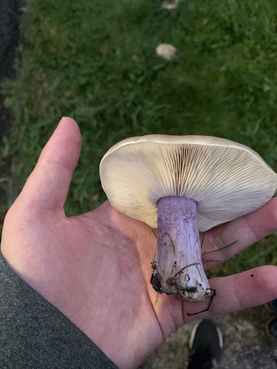 Habe heute auf dem Weg zum Friedhof noch zwei Zufallsfunde gemacht. Diese Pilze wuchsen auf einer kleinen Wiese, die Lamellen und die Hutoberfläche haben keine Lilafärbung, ist das Lepista saeva? Achtung sind leider unter Laternenlicht.