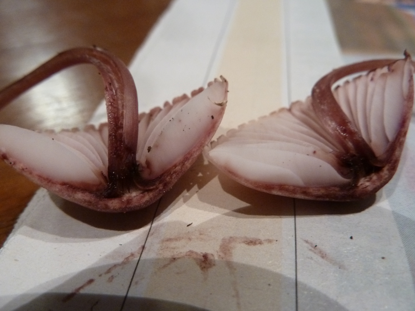 Hallo! Auf einem Buchenholzstumpf habe diese Mycena gefunden. Meine Bestimmungsversuche führten mich zum großen Blut-Helmling, passt das? Kein besonderer Geruch festzustellen, der Saft ist ziemlich spärlich und färbt kaum ab, siehe Fotos. Beste Grüße, Frank