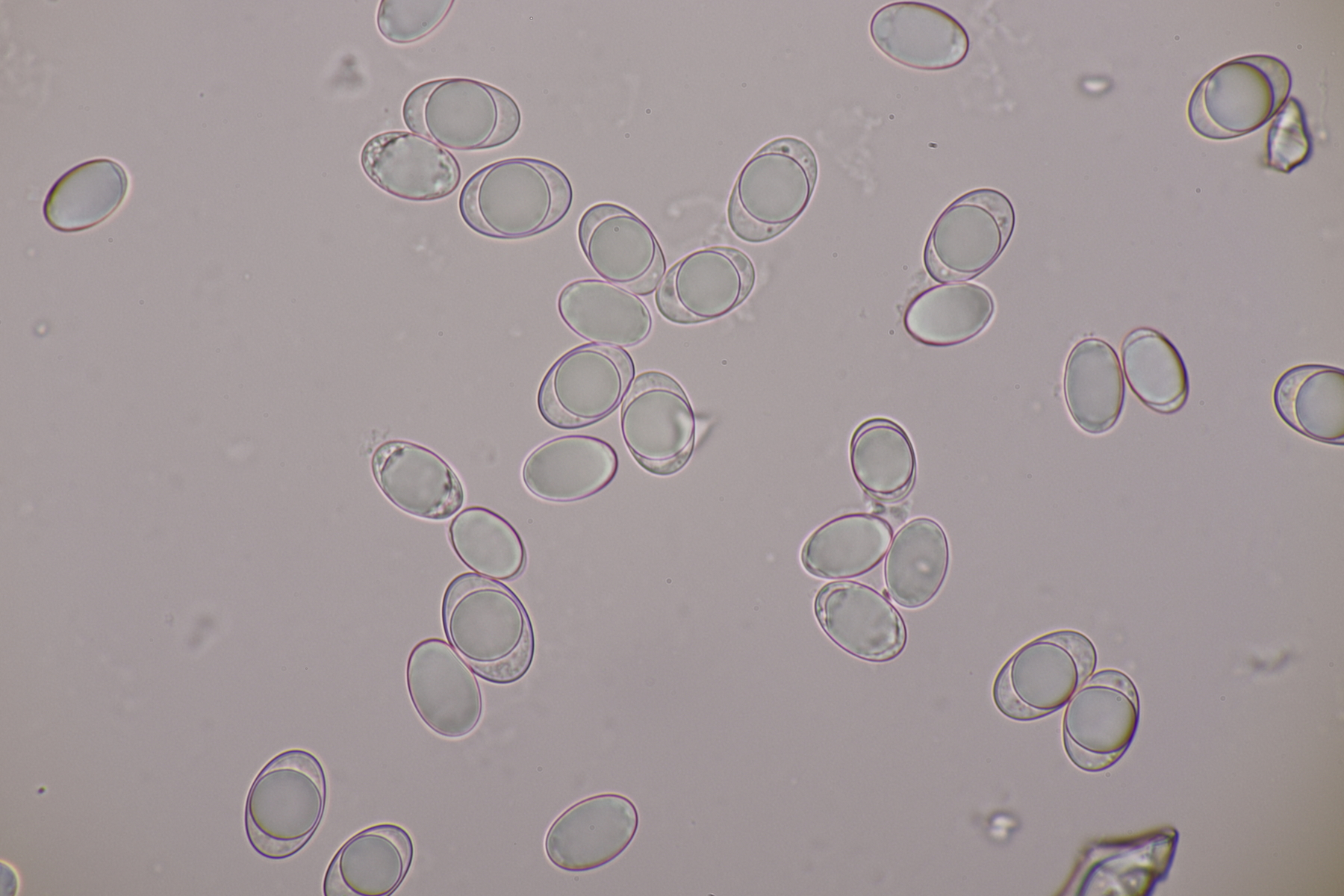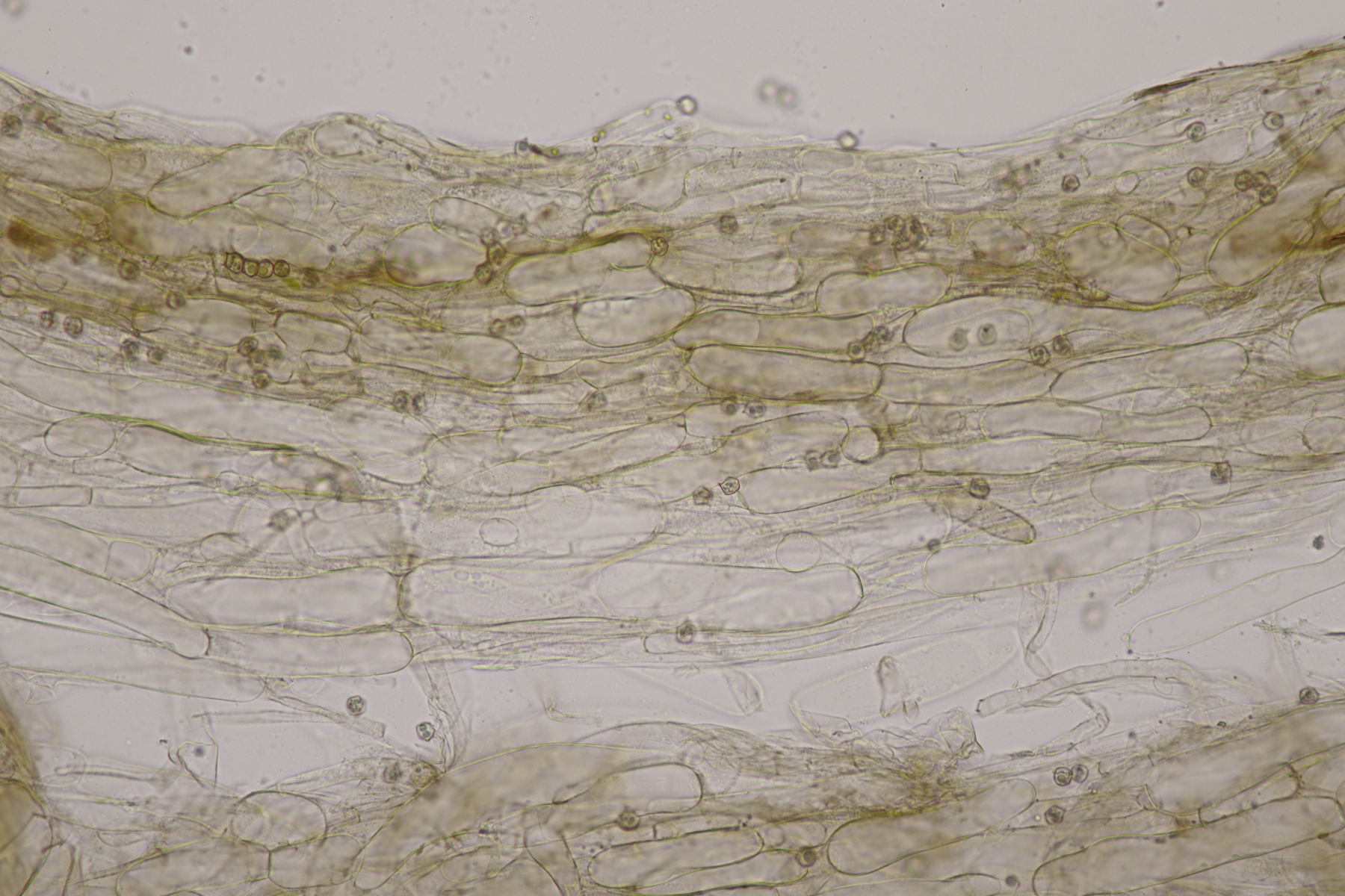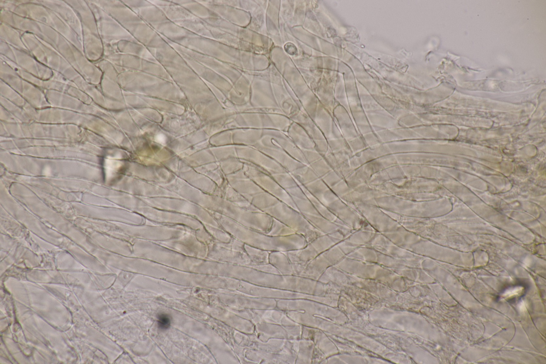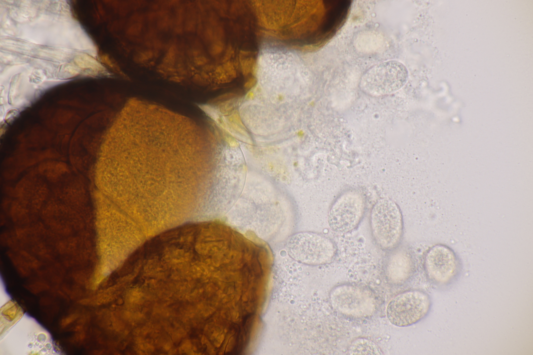 5. Ein Rötling mit deutlichem Mehlgeruch und durchscheinend gerieftem Hut. Sporen messen 7.8+-0.5 x 6.9+-0.5, Q=1.1+-0.1 bzw. 6.6-8.5 x 6.1-7.6, Q=0.9-1.2. Basidien 4-sporig mit Basalschnalle. Elemente der Huthaut bis um 170 µm lang, so daß ich hier bei Entoloma sericeum auskomme.