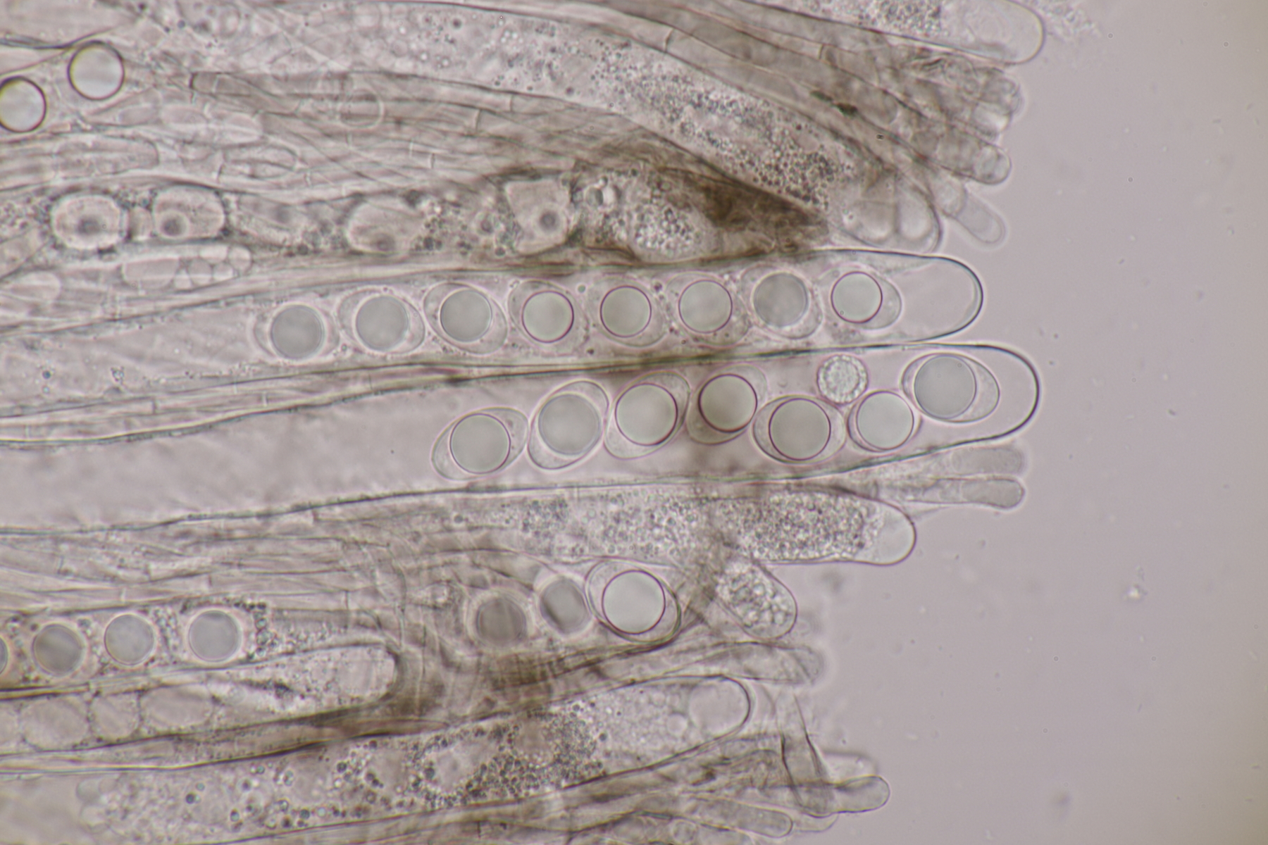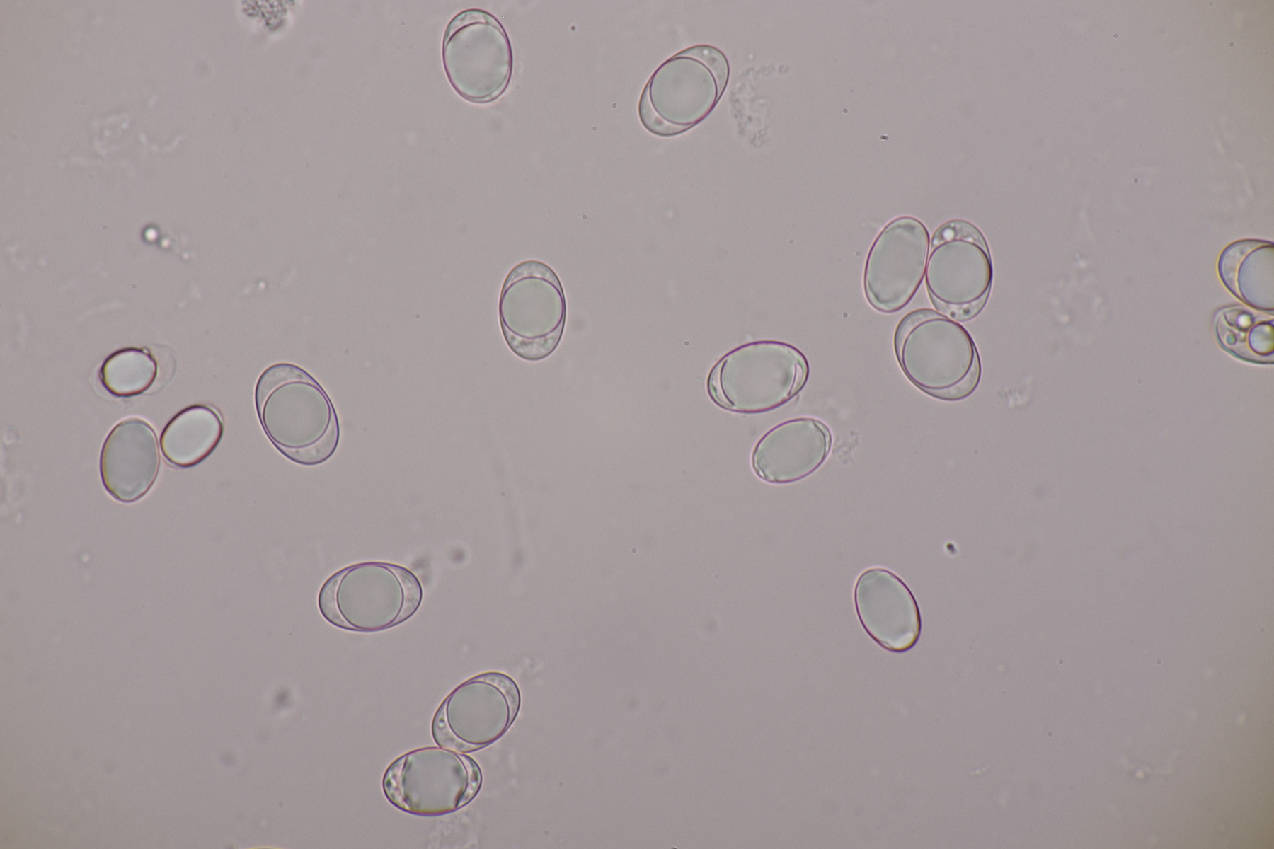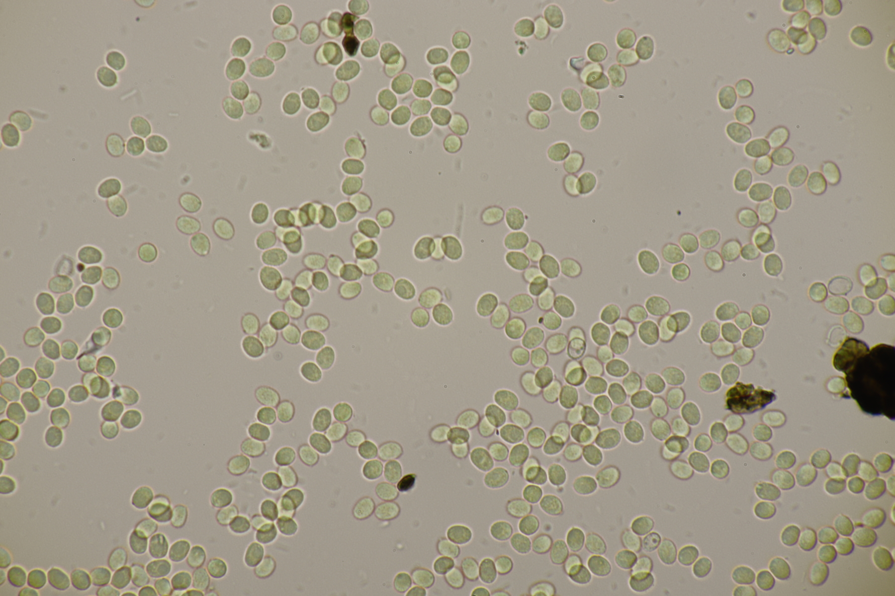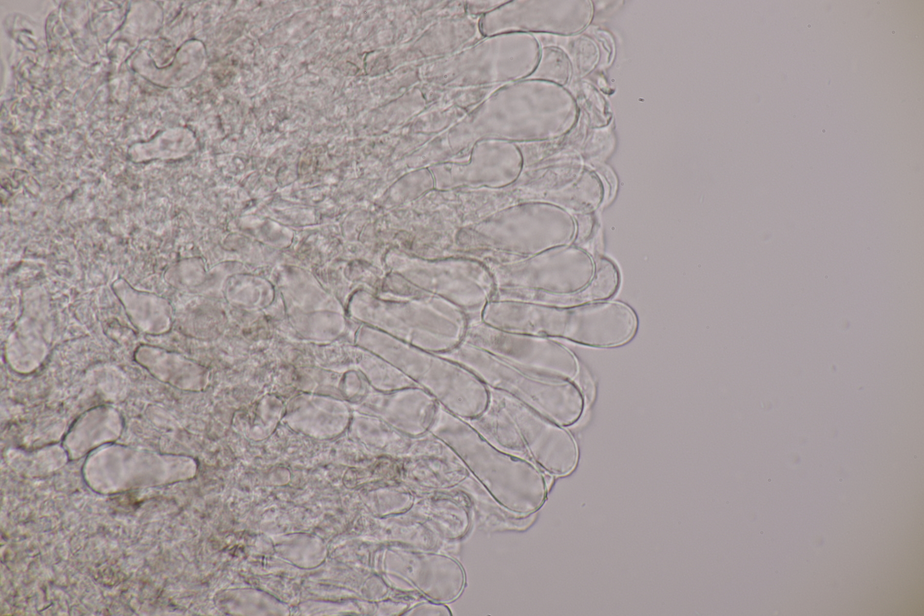 5. Ein Rötling mit deutlichem Mehlgeruch und durchscheinend gerieftem Hut. Sporen messen 7.8+-0.5 x 6.9+-0.5, Q=1.1+-0.1 bzw. 6.6-8.5 x 6.1-7.6, Q=0.9-1.2. Basidien 4-sporig mit Basalschnalle. Elemente der Huthaut bis um 170 µm lang, so daß ich hier bei Entoloma sericeum auskomme.