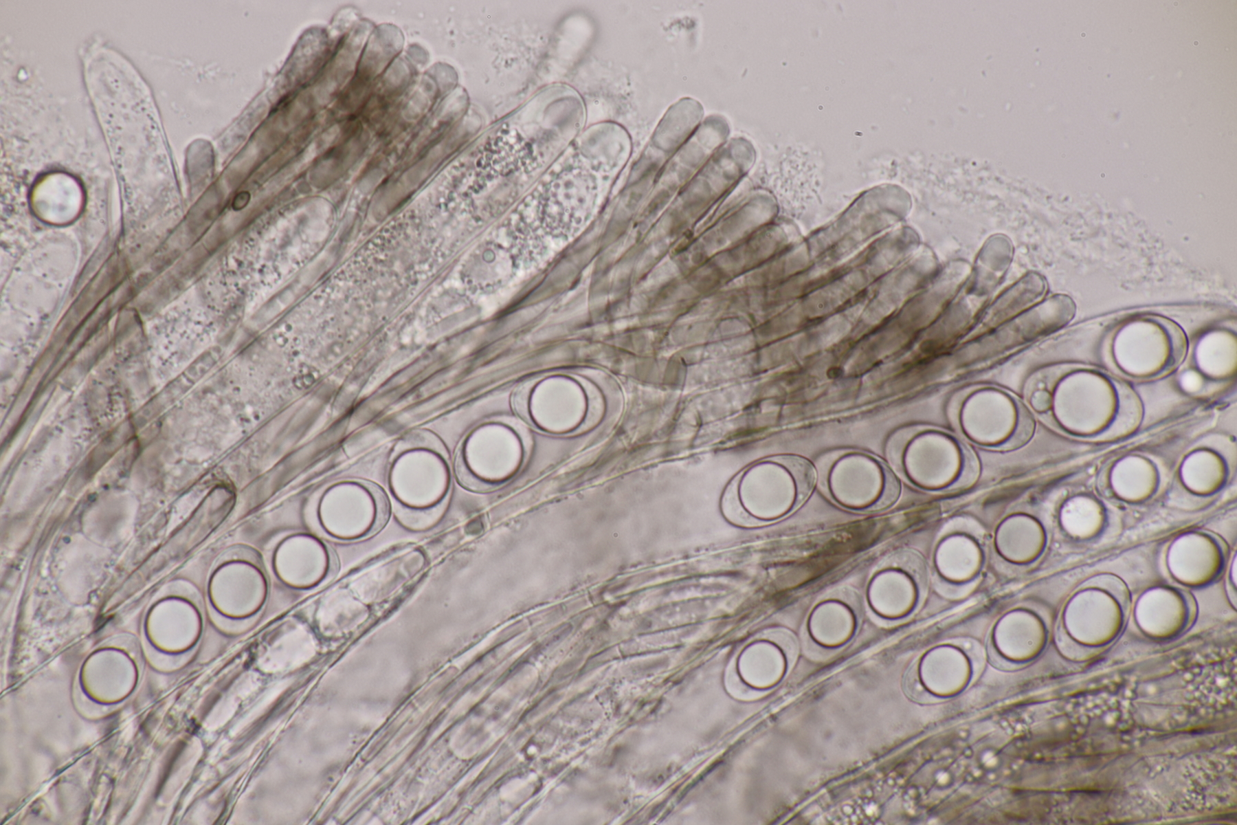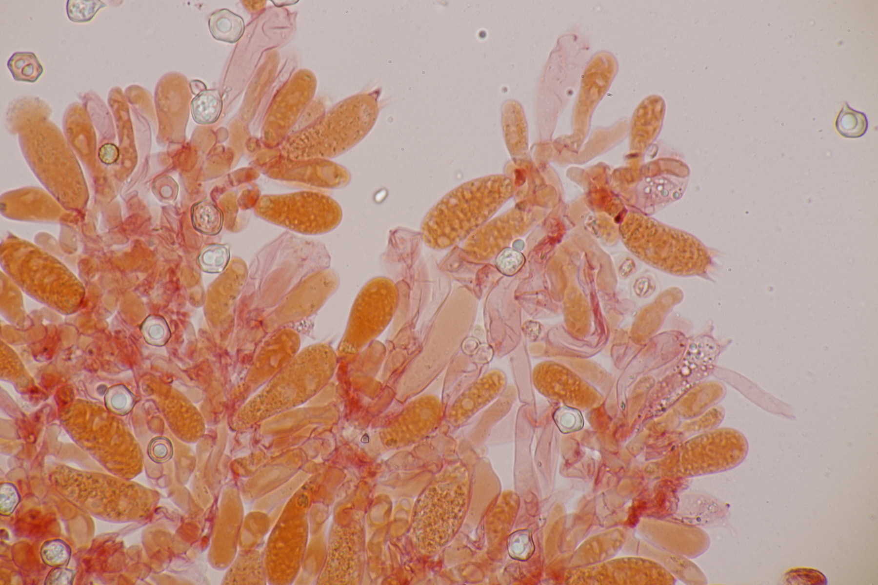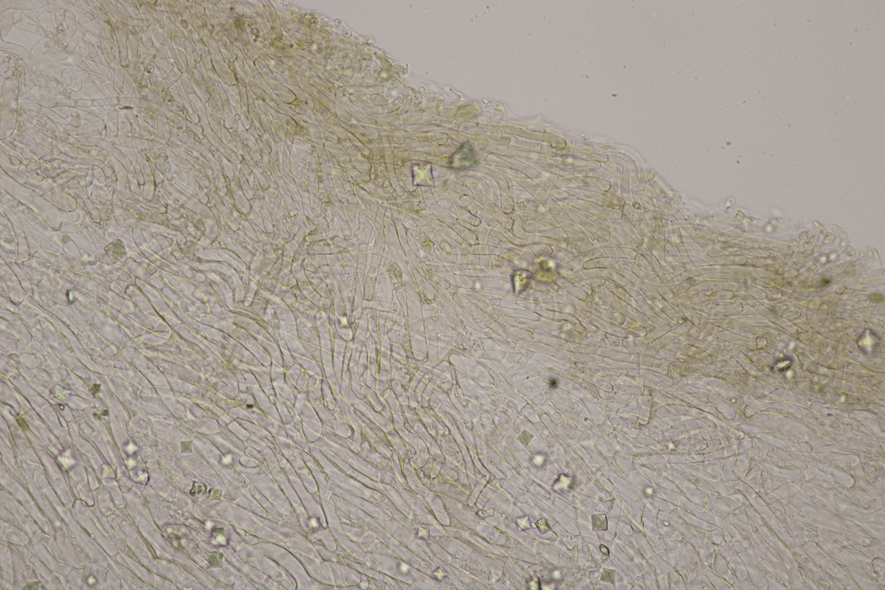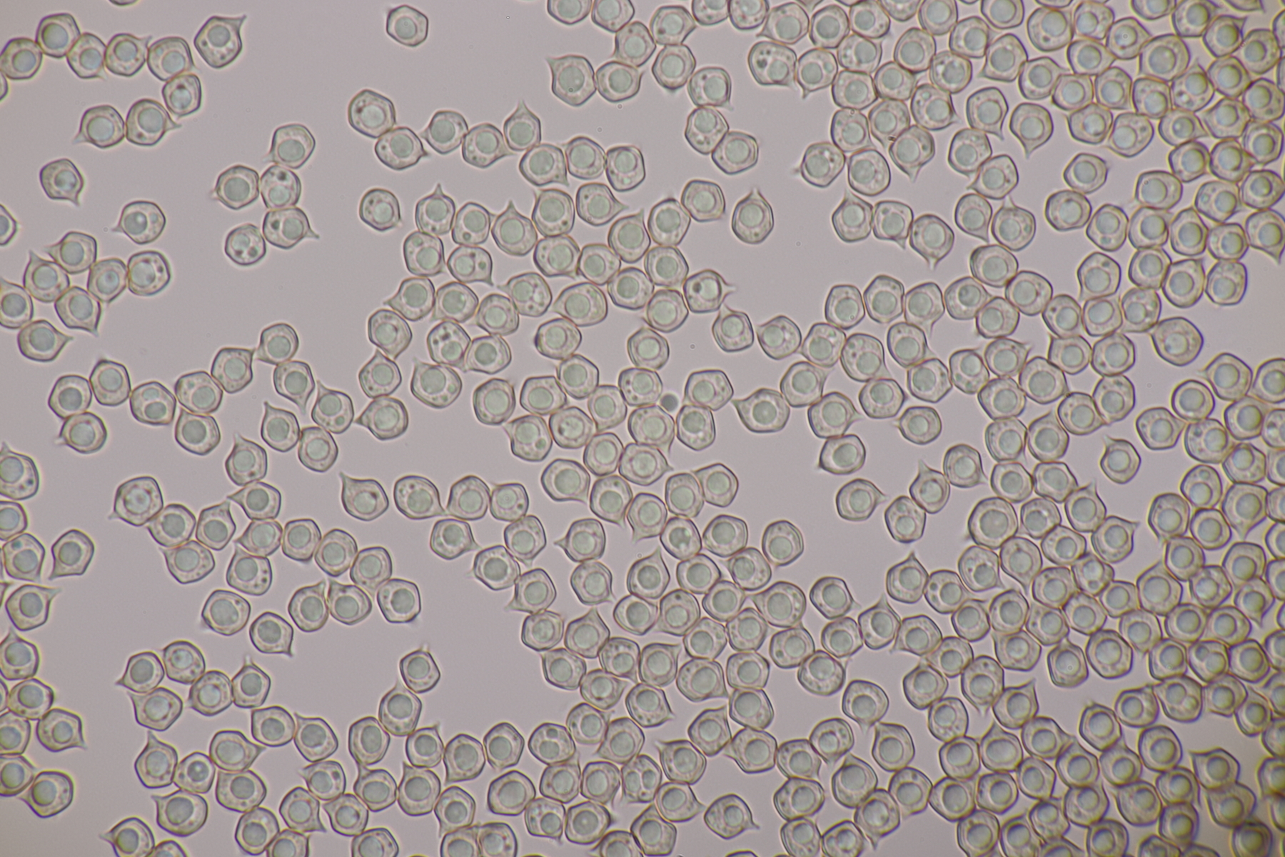 5. Ein Rötling mit deutlichem Mehlgeruch und durchscheinend gerieftem Hut. Sporen messen 7.8+-0.5 x 6.9+-0.5, Q=1.1+-0.1 bzw. 6.6-8.5 x 6.1-7.6, Q=0.9-1.2. Basidien 4-sporig mit Basalschnalle. Elemente der Huthaut bis um 170 µm lang, so daß ich hier bei Entoloma sericeum auskomme.