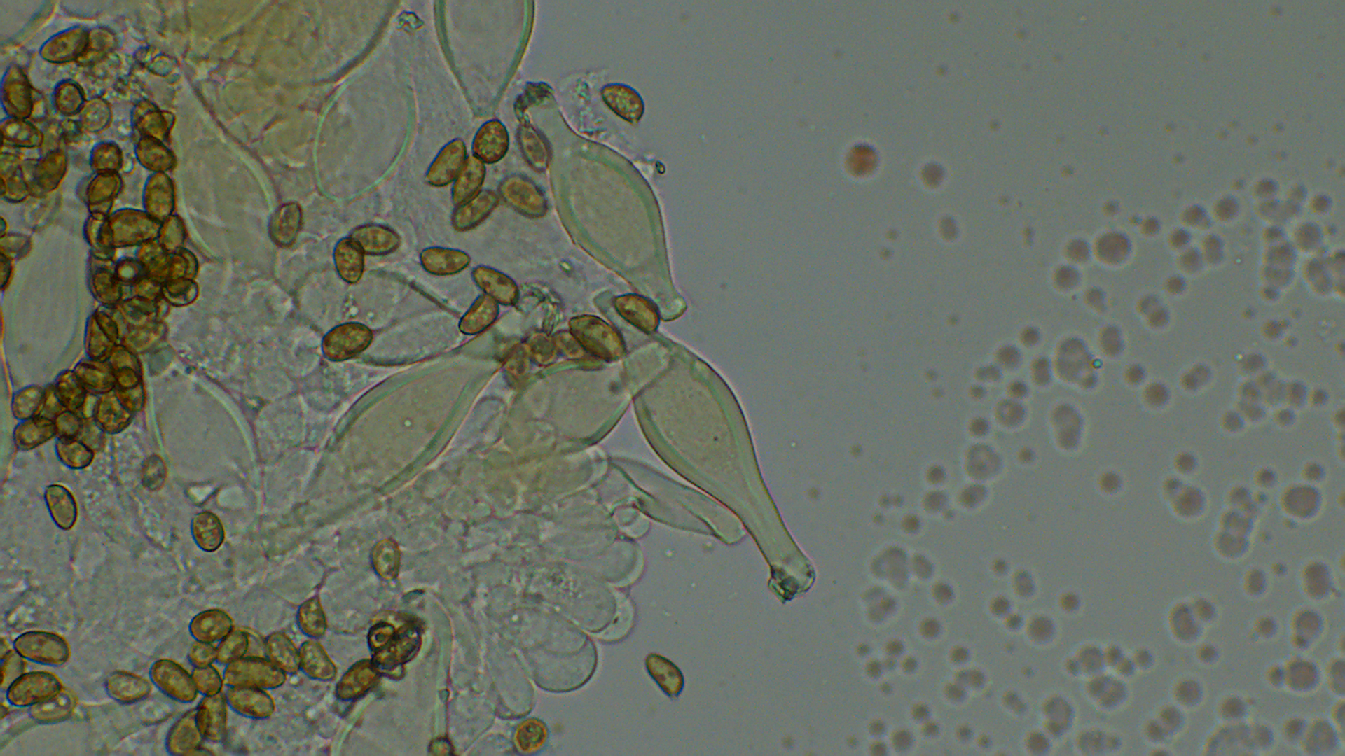 Nunja, die Stiele waren ganz bereift und die Sporen gingen von 7,7-12,9 (12,9 war allerdings eine absolute Ausreißerspore) X 5,1-6,7; im Durchschnitt 9,8X5,7.