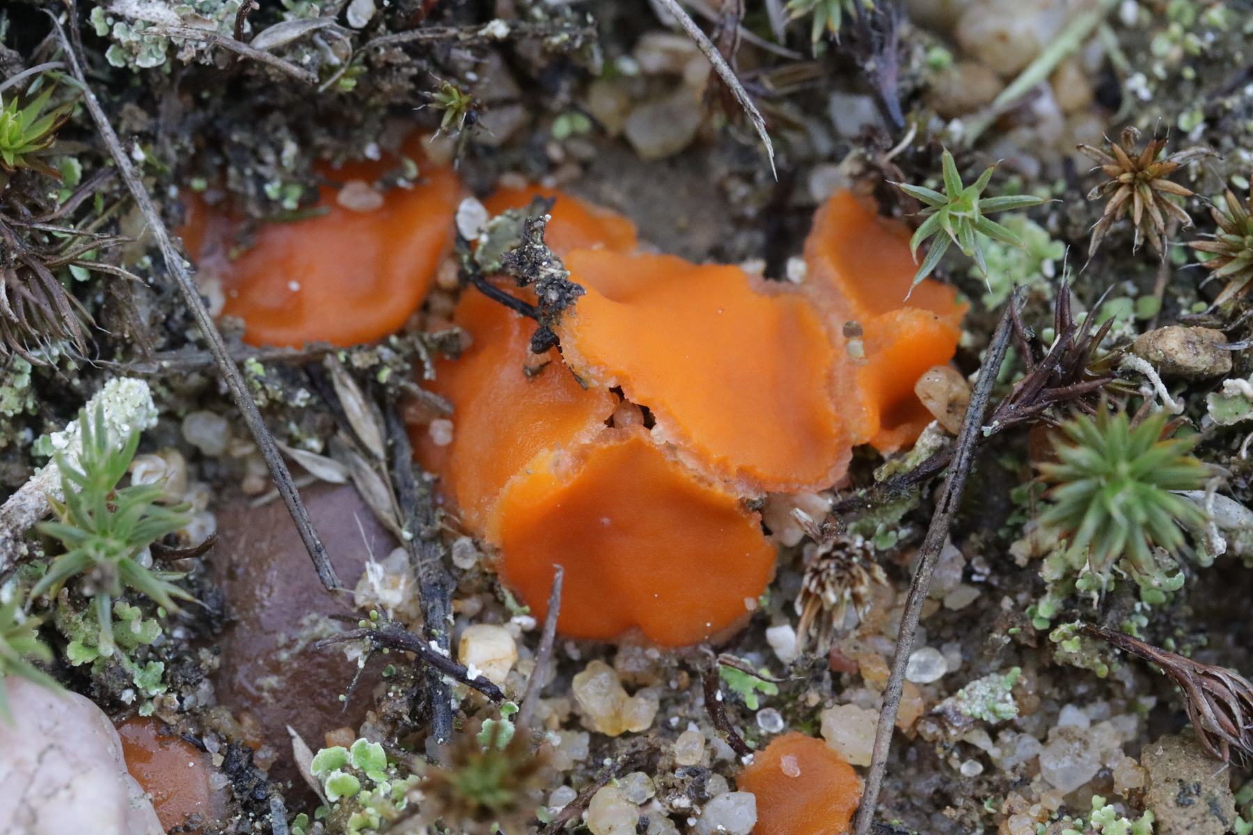 Hast du bei den Saftlingen mal die Sporen angeguckt? Mit den orangenen / lachsfarbenen Lamellen, kleinen Fruchtkörpern und viel rot könnte das ja auch Hygrocybe conicoides sein, oder?