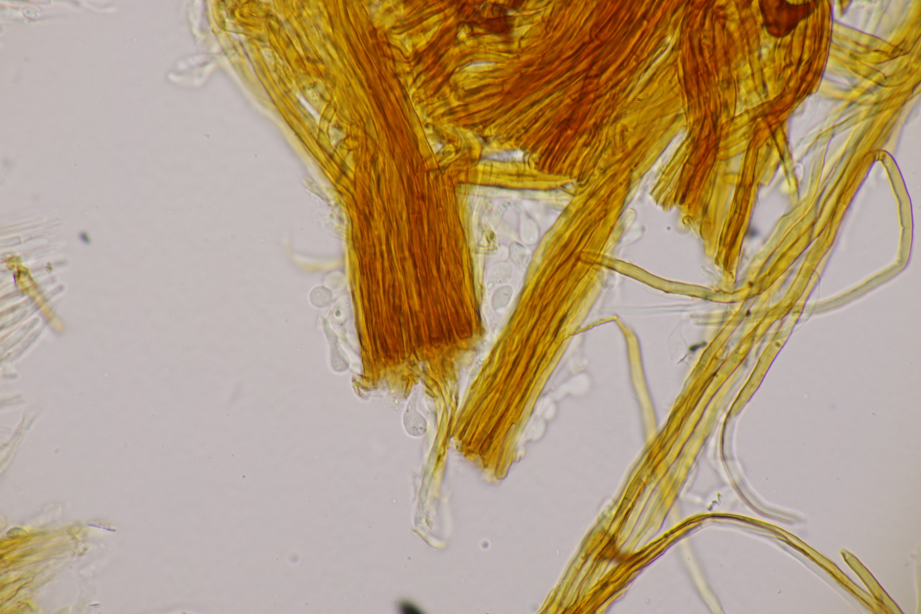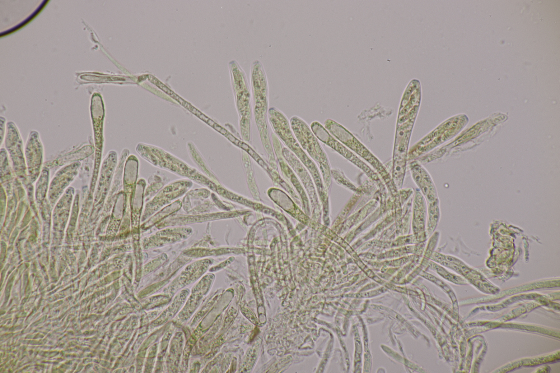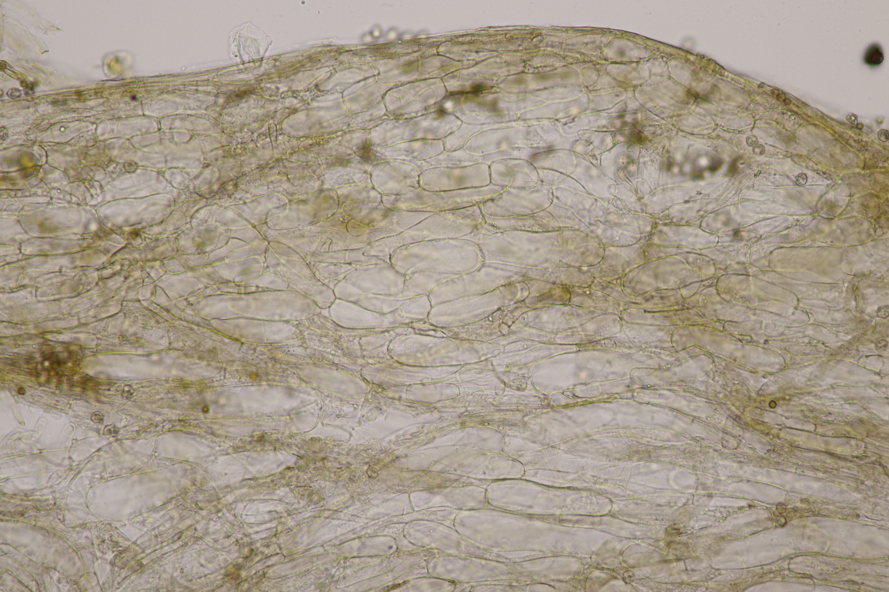 2. Hier bin ich unschlüssig. Es war eine Subgleba vorhanden, bräunlich. Sporen leicht warzig, 3.6-4.5 µm Durchmesser bzw. 4.2+-0.2 µm. Pedicel sehr kurz, um 1 µm. Capillitium ohne Septen, mit zahlreichen Poren. Der einzige Bovist, der überhaupt in Frage käme ist B. aestivalis, aber da sind die Sporen zu groß. Bei Lycoperdon lande ich dann am ehesten bei L. lividum. Kann das passen?