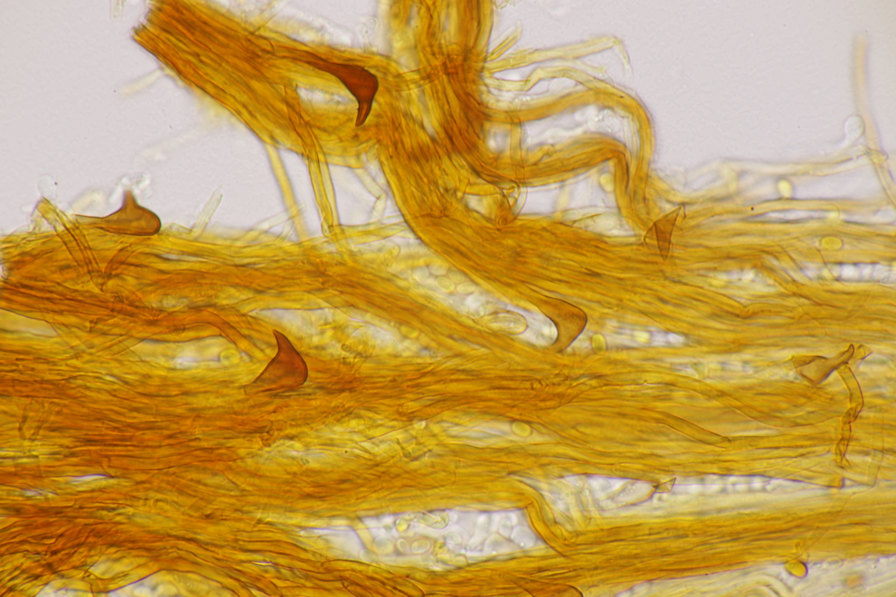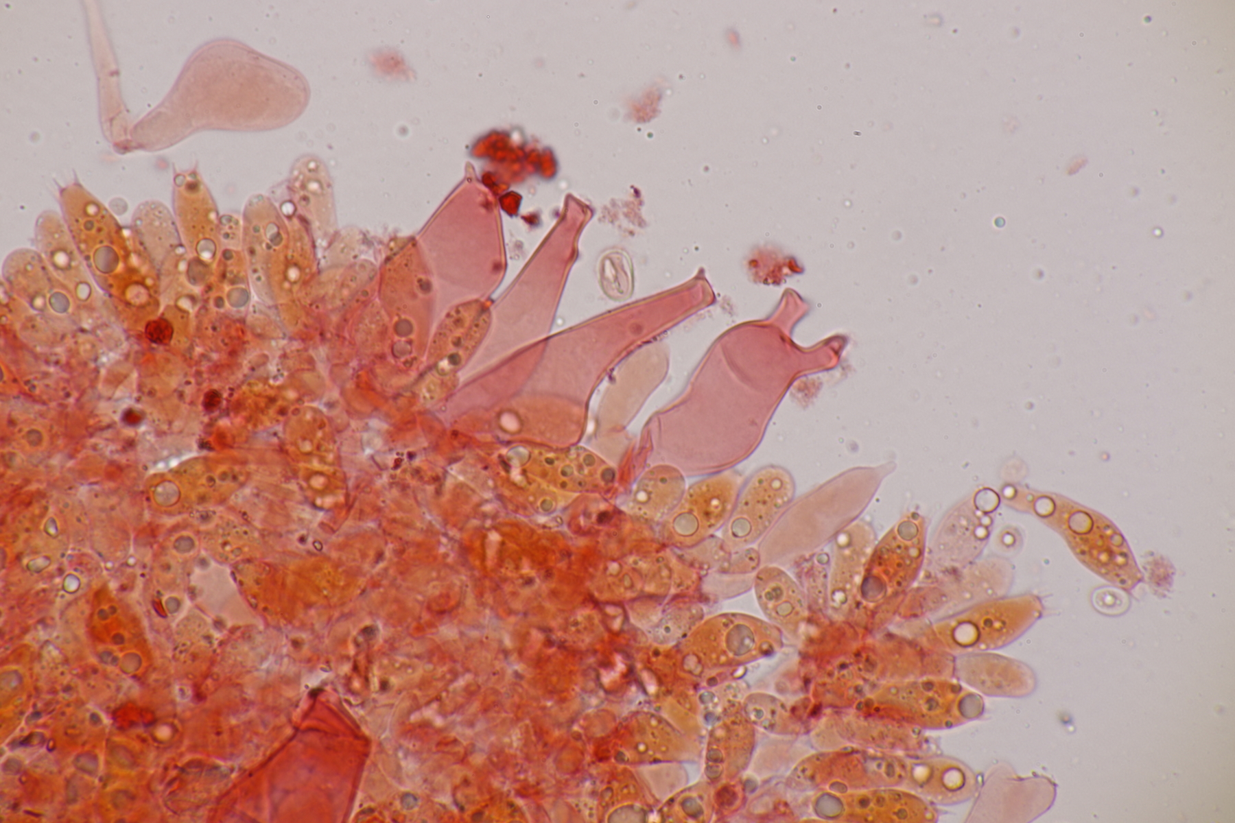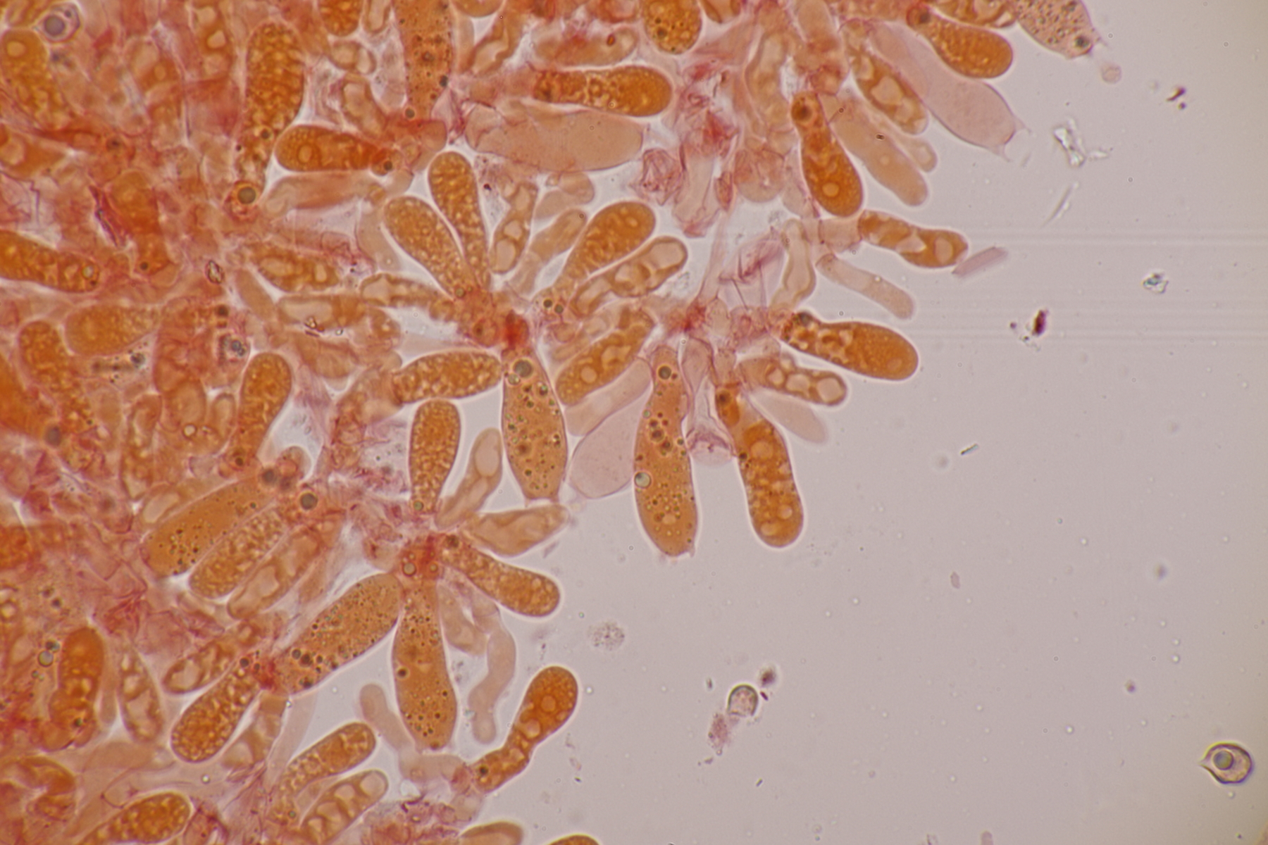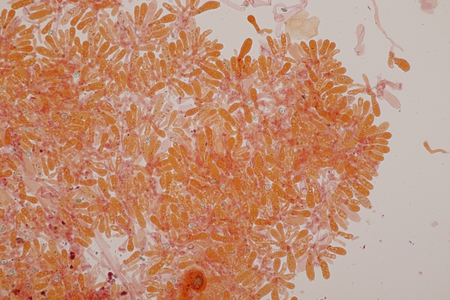 2. Hier bin ich unschlüssig. Es war eine Subgleba vorhanden, bräunlich. Sporen leicht warzig, 3.6-4.5 µm Durchmesser bzw. 4.2+-0.2 µm. Pedicel sehr kurz, um 1 µm. Capillitium ohne Septen, mit zahlreichen Poren. Der einzige Bovist, der überhaupt in Frage käme ist B. aestivalis, aber da sind die Sporen zu groß. Bei Lycoperdon lande ich dann am ehesten bei L. lividum. Kann das passen?
