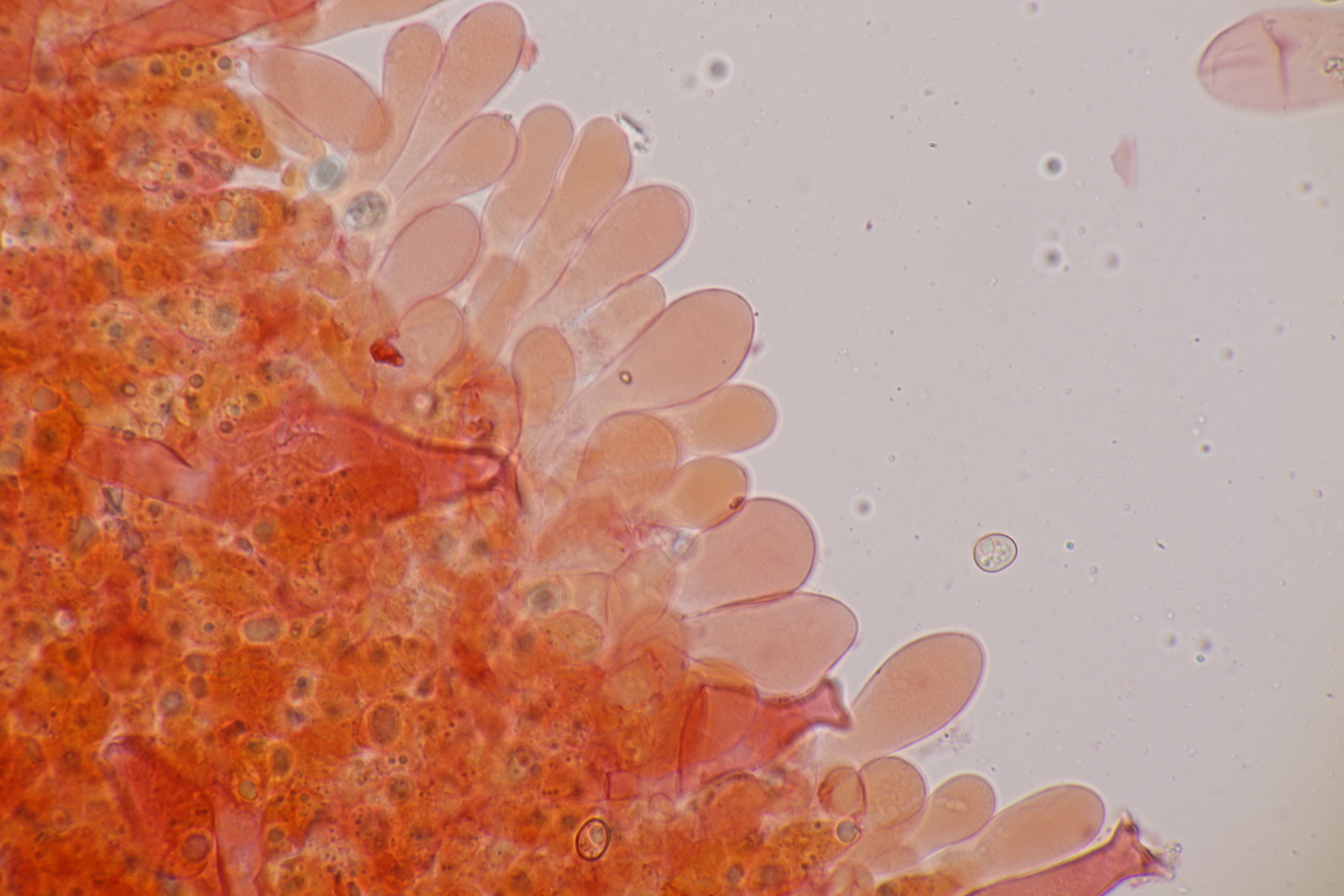 1. Eine Entoloma mit am Rand etwas gerieftem Hut und leichtem Buckel. Deutlicher Mehlgeruch. Schnallen sind vorhanden, Zystiden fehlen, Sporen messen 7.8-8.9 x 6.1-7.5, Q=1.1-1.3, bzw. 8.3+-0.3 x 6.9+-0.3, Q=1.2+-0.1. Die Elemente der Huthaut sind auffallend kurz. Kann ich den als Entoloma vindobonense ablegen?