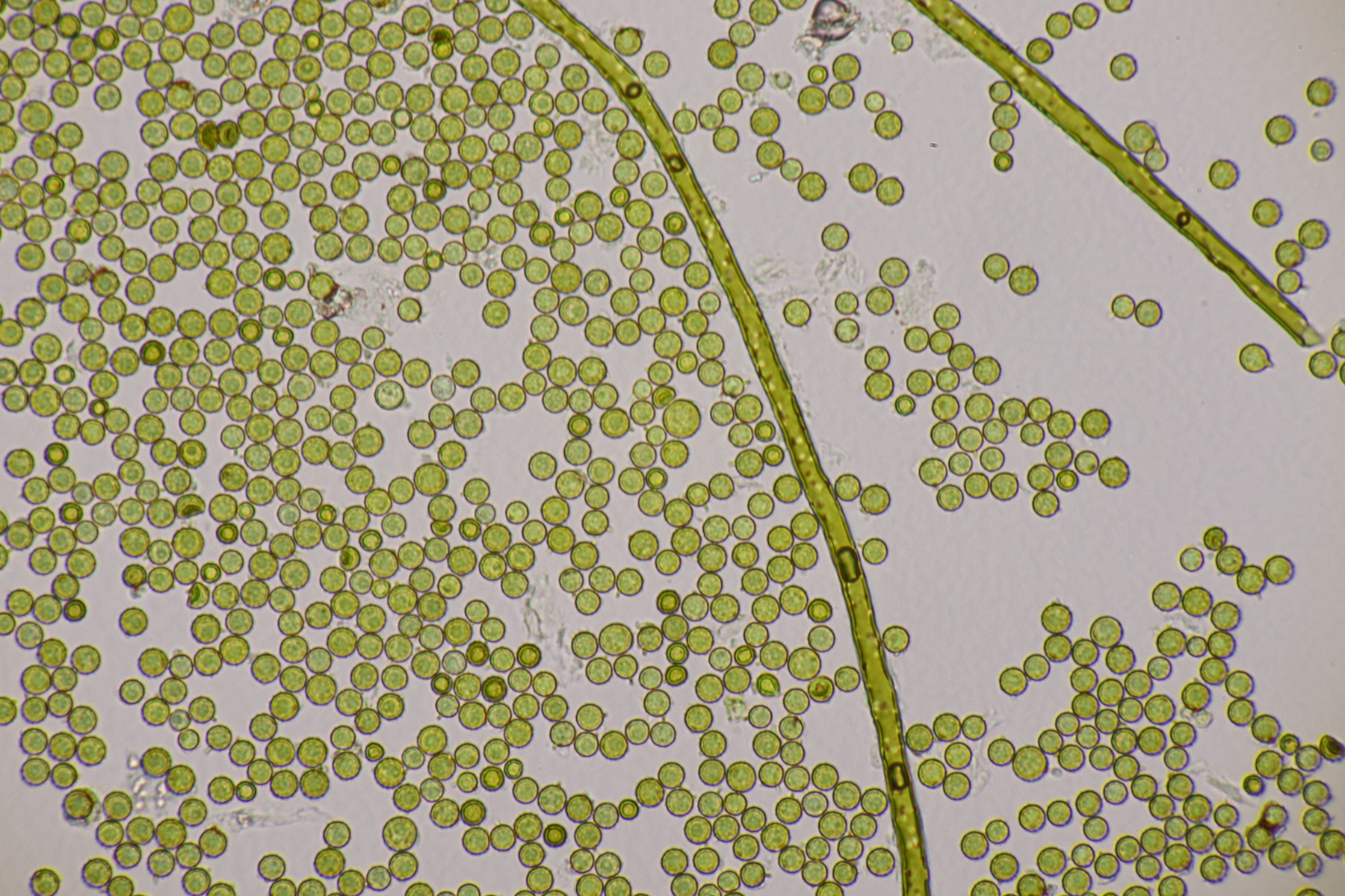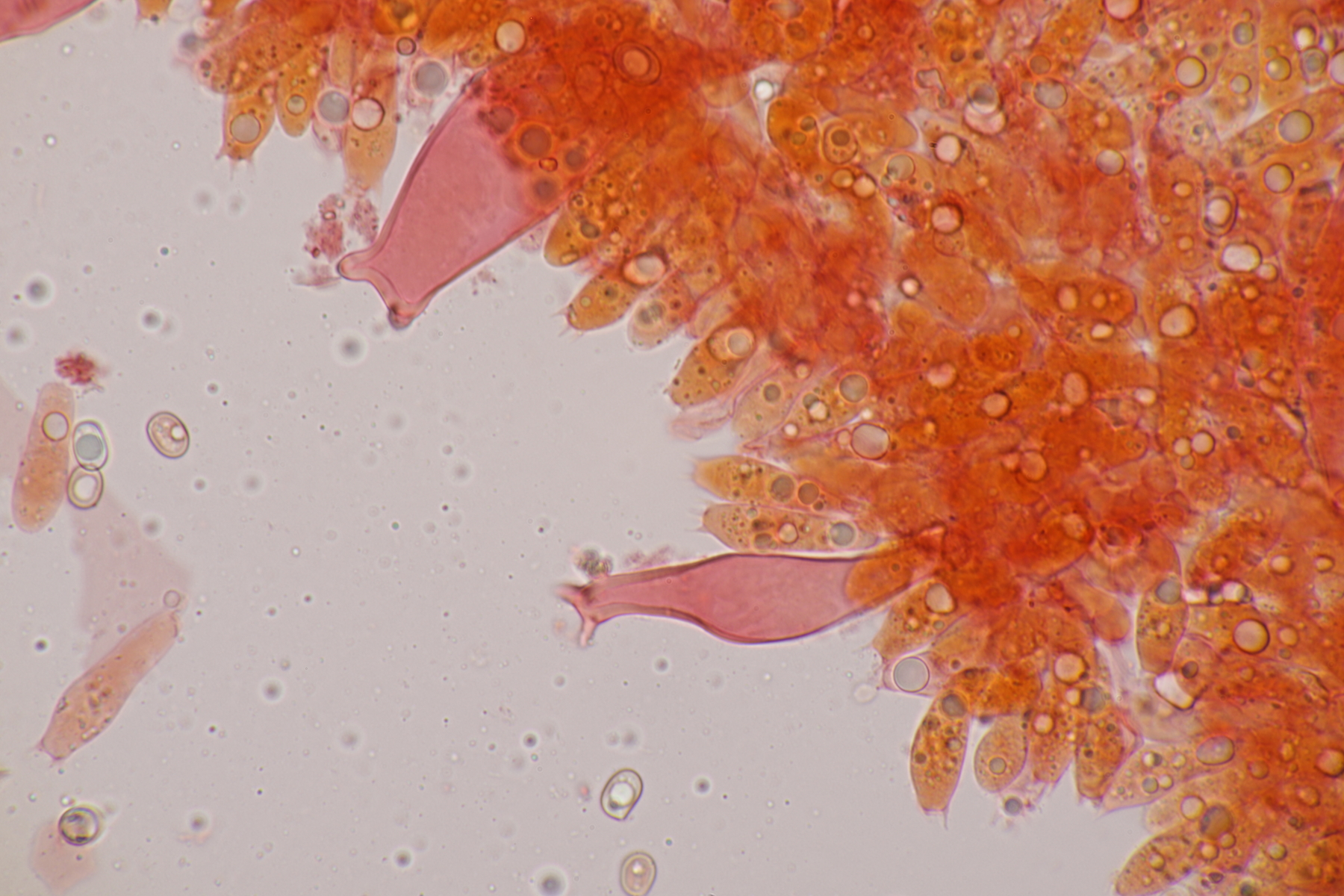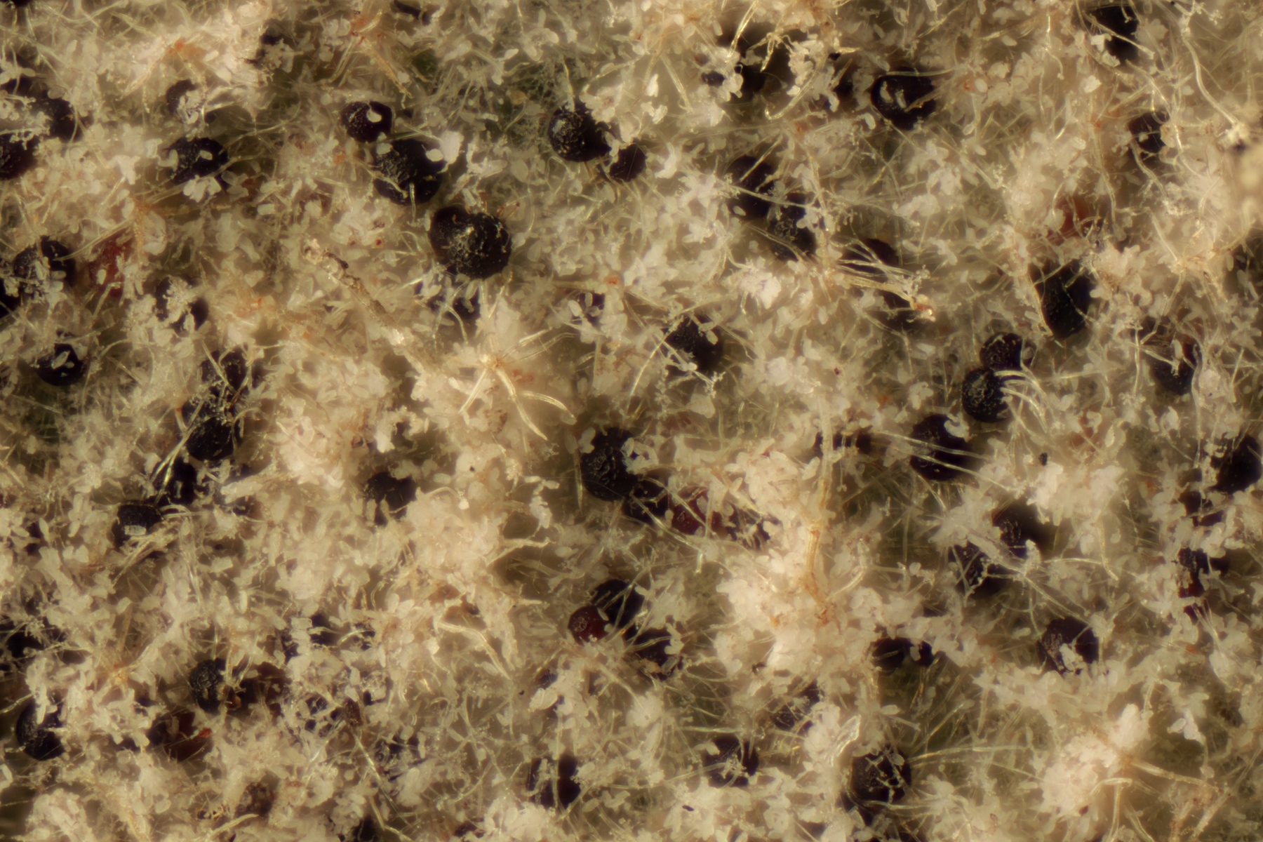 2. Hier bin ich unschlüssig. Es war eine Subgleba vorhanden, bräunlich. Sporen leicht warzig, 3.6-4.5 µm Durchmesser bzw. 4.2+-0.2 µm. Pedicel sehr kurz, um 1 µm. Capillitium ohne Septen, mit zahlreichen Poren. Der einzige Bovist, der überhaupt in Frage käme ist B. aestivalis, aber da sind die Sporen zu groß. Bei Lycoperdon lande ich dann am ehesten bei L. lividum. Kann das passen?