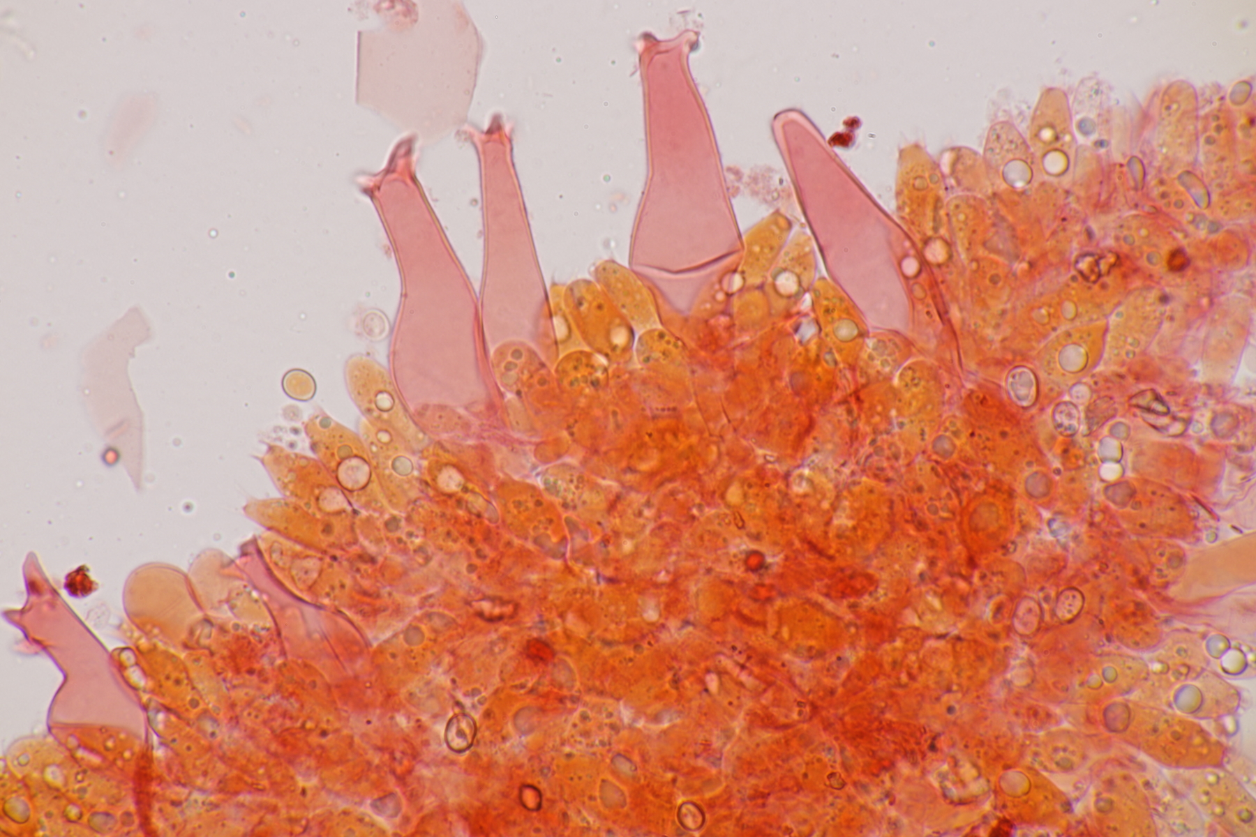 1. Eine Entoloma mit am Rand etwas gerieftem Hut und leichtem Buckel. Deutlicher Mehlgeruch. Schnallen sind vorhanden, Zystiden fehlen, Sporen messen 7.8-8.9 x 6.1-7.5, Q=1.1-1.3, bzw. 8.3+-0.3 x 6.9+-0.3, Q=1.2+-0.1. Die Elemente der Huthaut sind auffallend kurz. Kann ich den als Entoloma vindobonense ablegen?