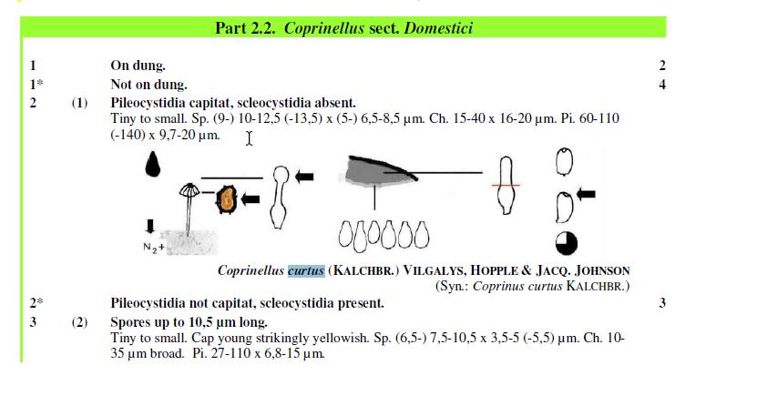 I am gonna suggest Coprinellus curtus (KALCHBR.) VILGALYS, HOPPLE & JACQ. JOHNSON although the spores are just not too large. It really matches to this: