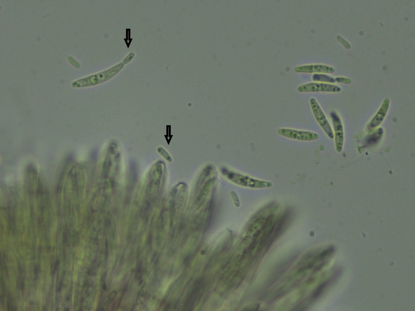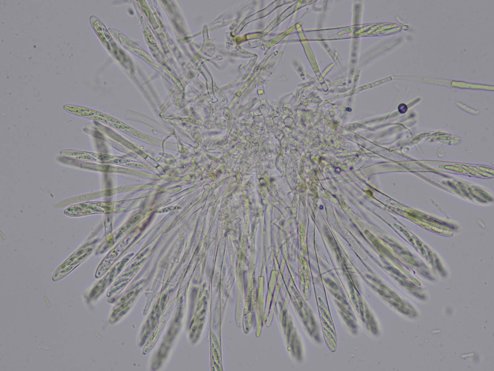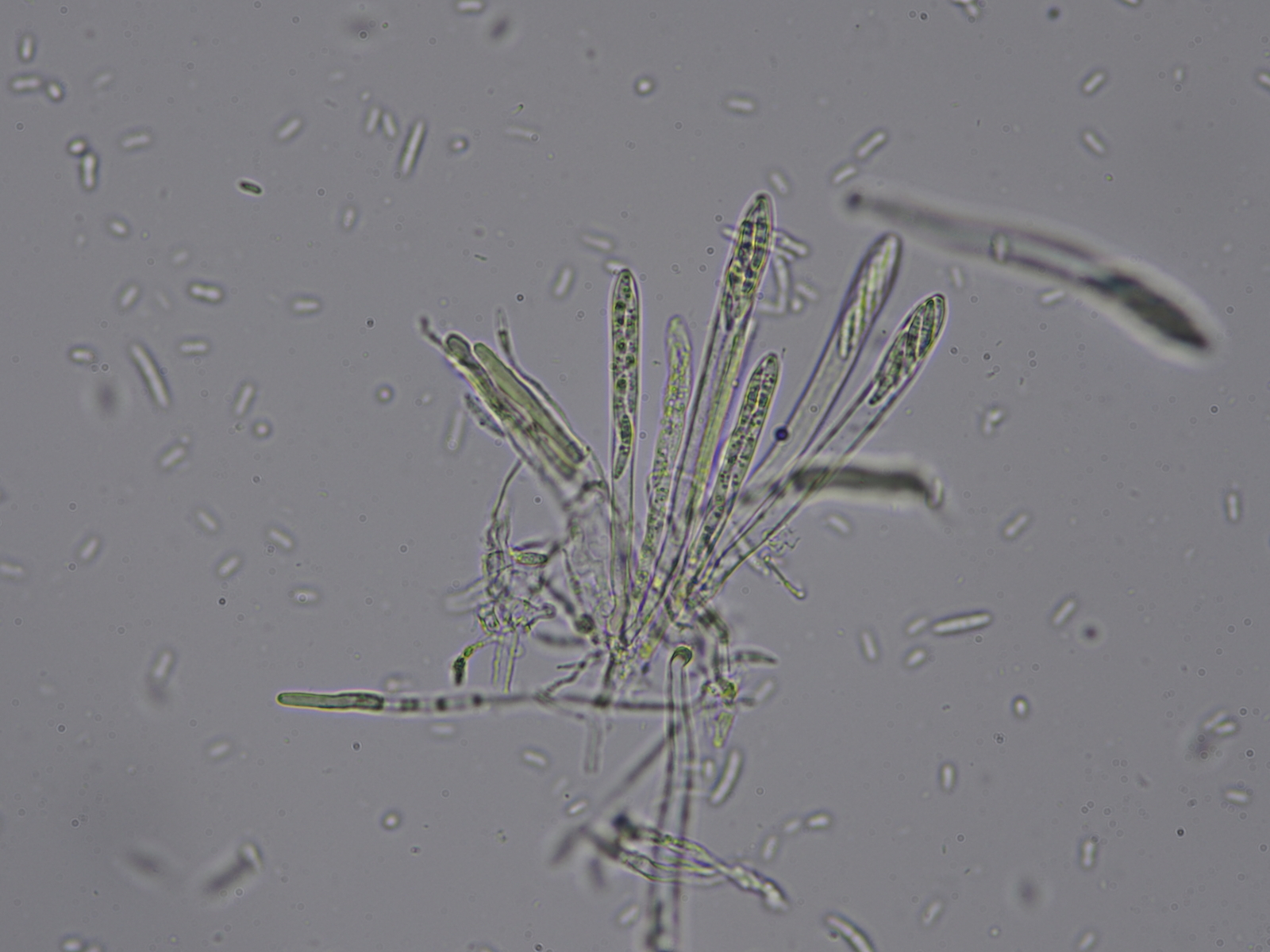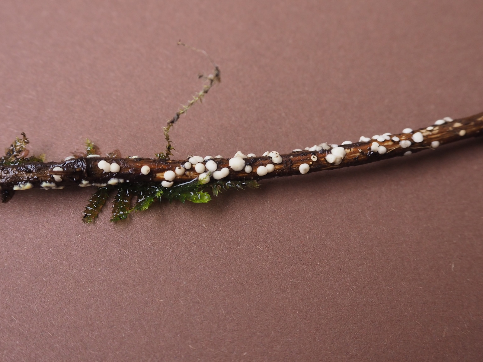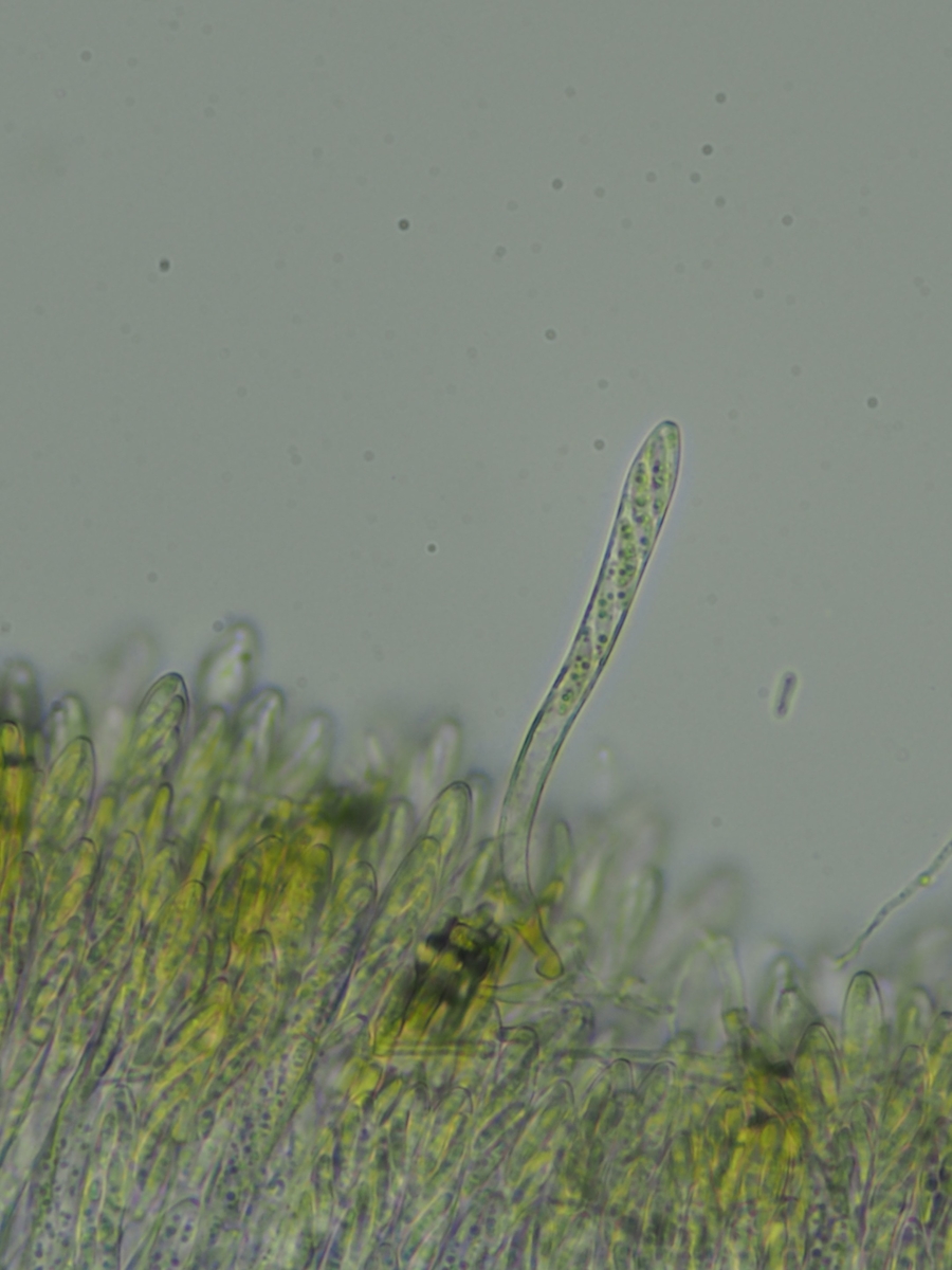 Hallo zusammen, vielleicht könnt ihr mir helfen auf die Gattung zu kommen? Das folgende weisse Becherchen fand ich an einem toten Rubus-Zweig in Bachnähe (feucht aber nicht aquatisch). Die Fruchtkörper sind ungestielt, unbehaart, weiss, trocken angedeutet becherförmig, nass eher kissenförmig, mehr oder weniger altweiss (ohne Gelb-, Grau- oder Grünstich) und bis maximal 1mm groß. Ich finde nix passendes... eine Mollisia so ganz ohne Graustich?