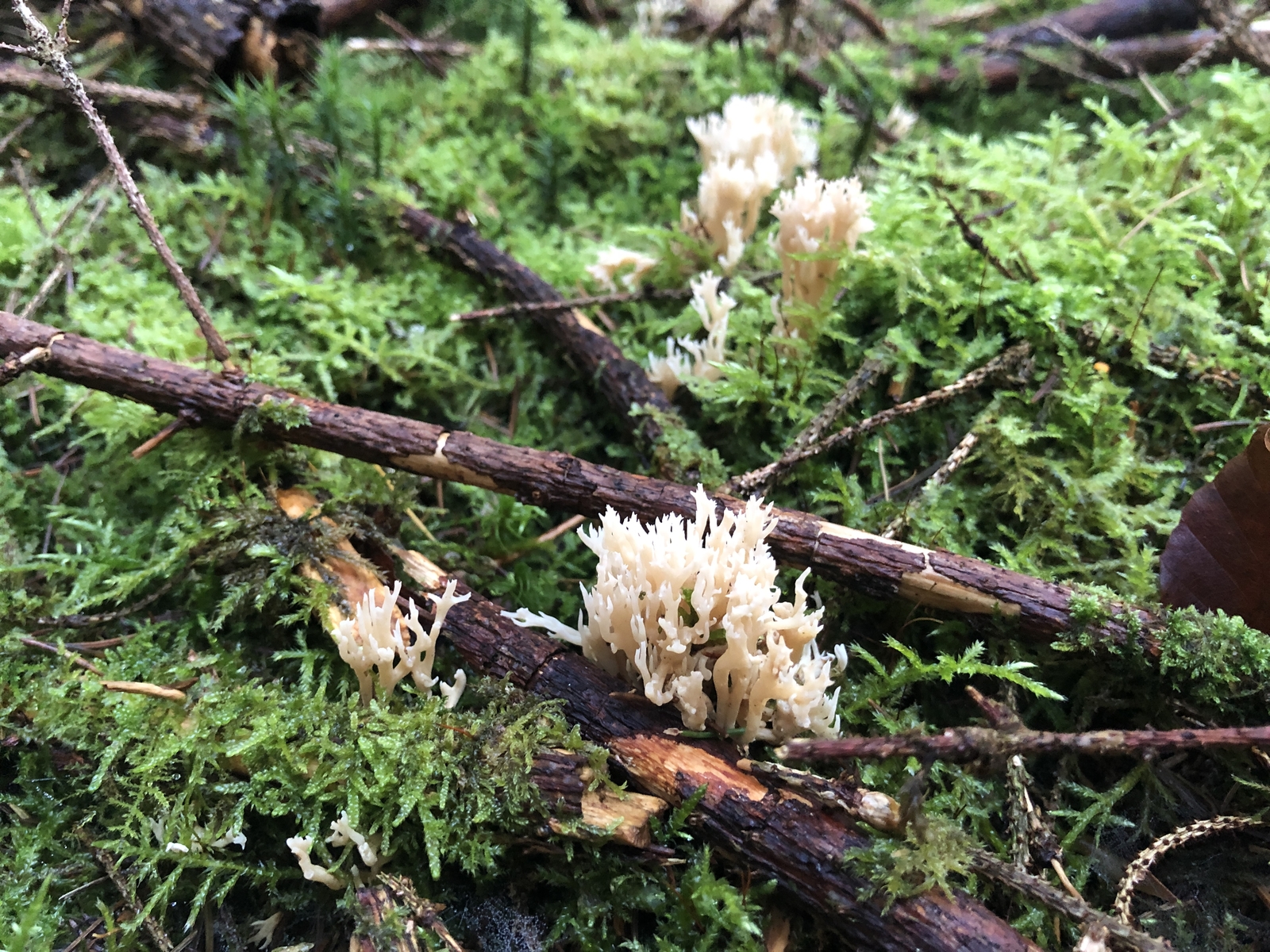 4. Ein paar Herbstlorcheln haben die riesigen Holzstapel überall an den Wegrändern überlebt.