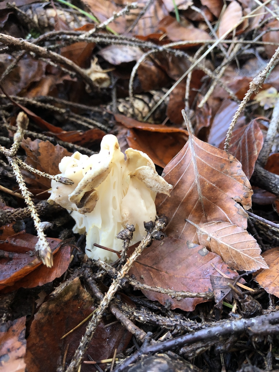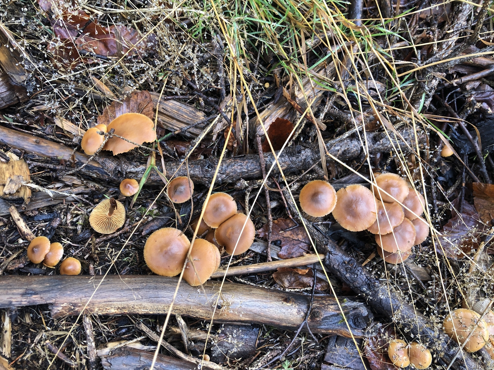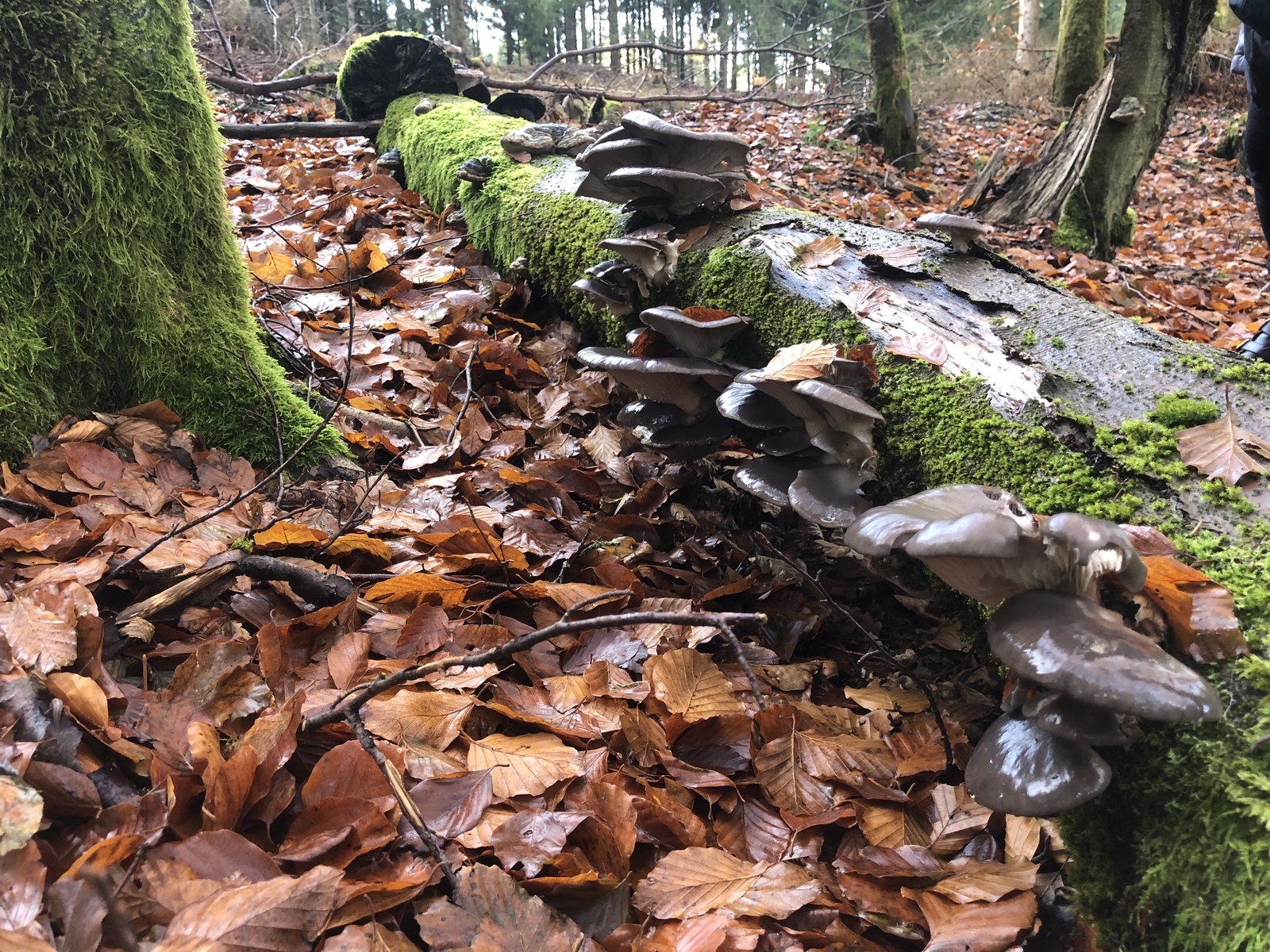 4. Ein paar Herbstlorcheln haben die riesigen Holzstapel überall an den Wegrändern überlebt.