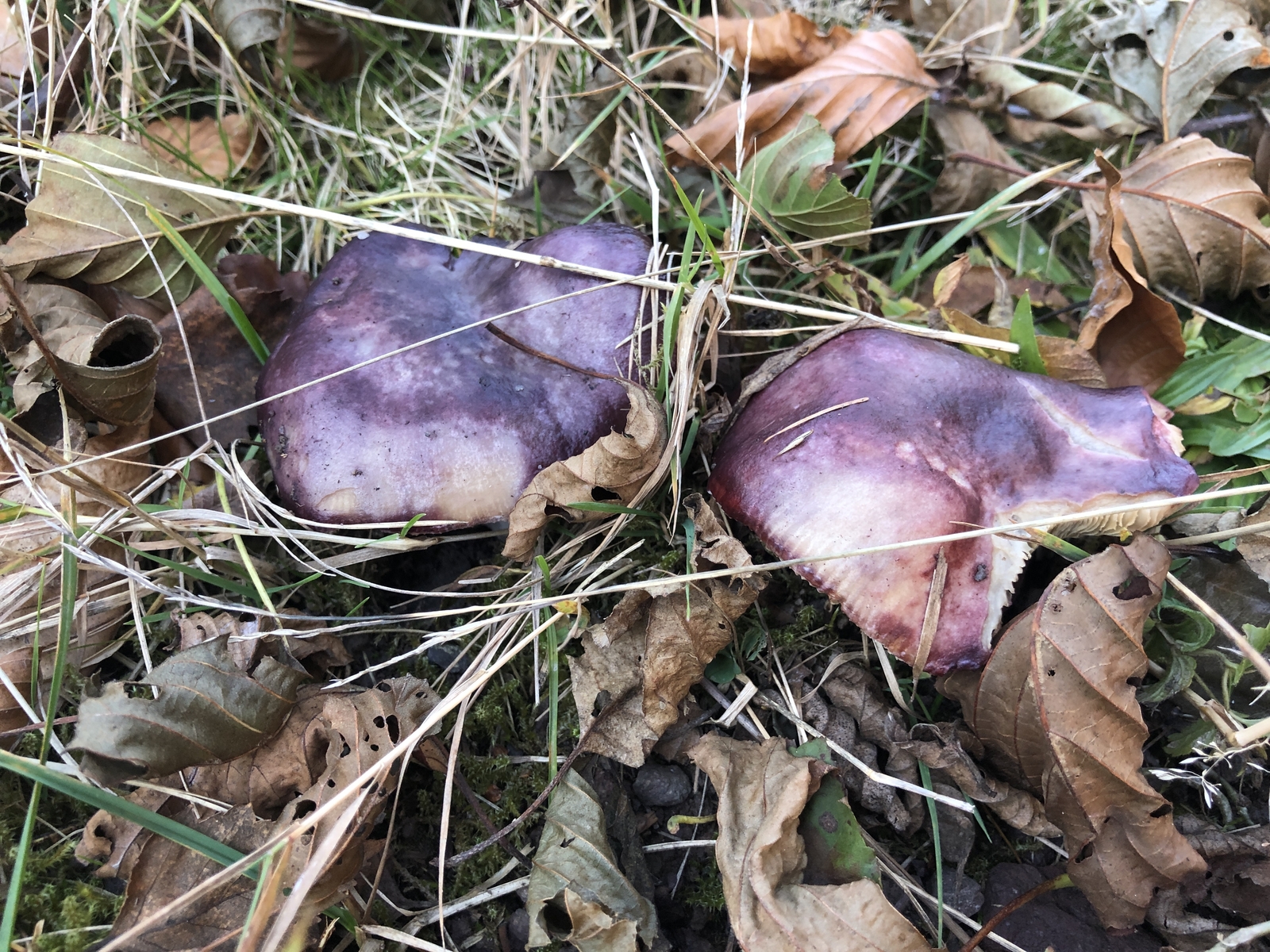 22. Nicht mehr taufrisch, aber immer noch gut als Lila Lacktrichterlinge erkennbar .