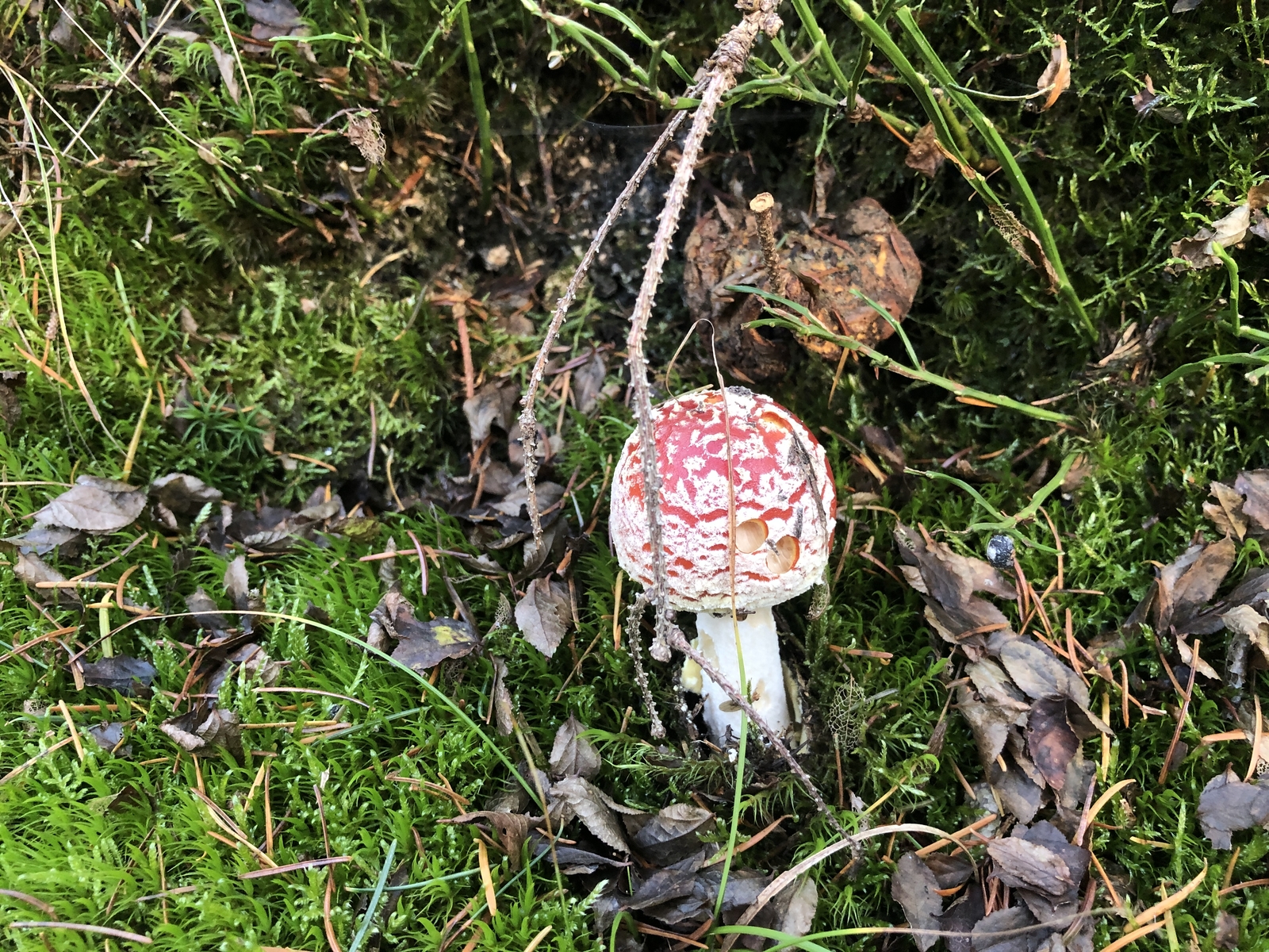 27. Sogar junge Fliegenpilze stehen noch im Wald.