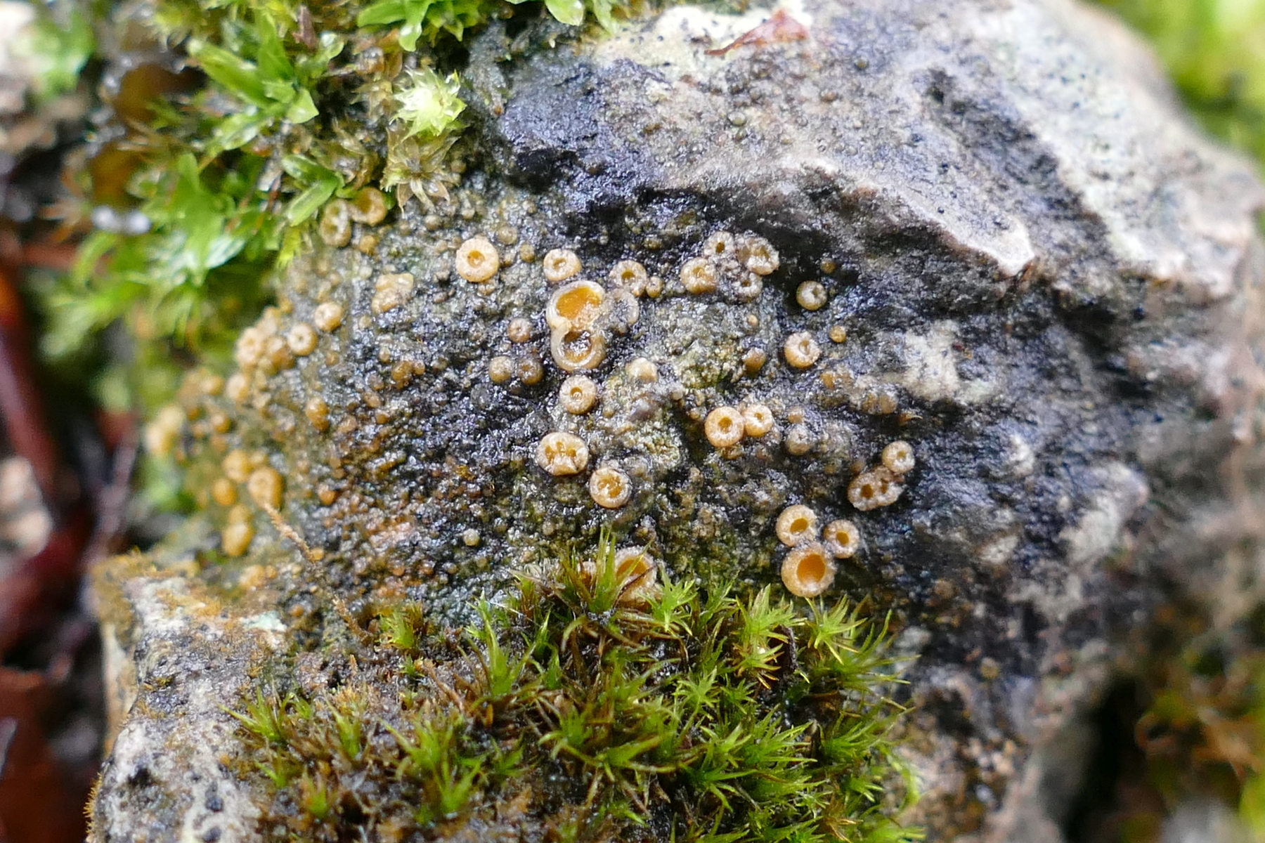 Diese Flechte wurde ebenfalls auf der Kalksteinmauer der Burg gefunden, unweit der Toninien.