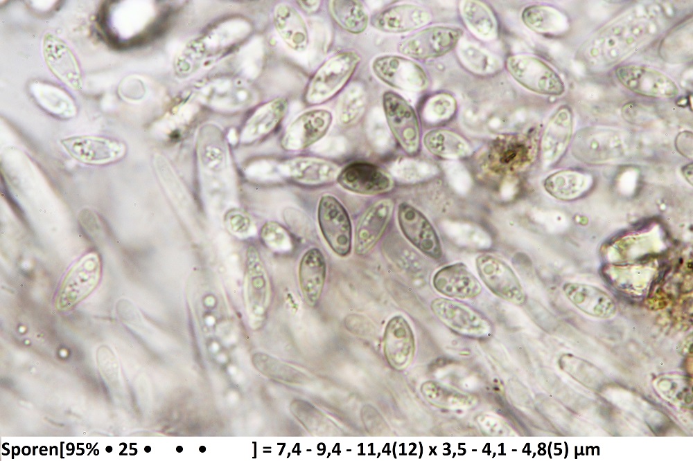 Die Asci haben keine Haken (-) und sind IKI+. Es gibt ein gestreiftes Ornament bei den Sporen, dass man oft sehr schwach erkennt.