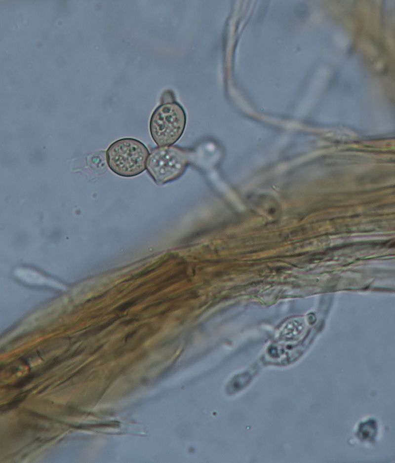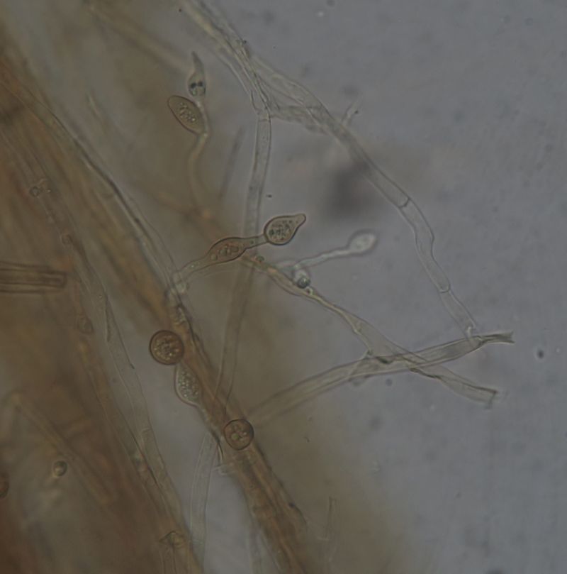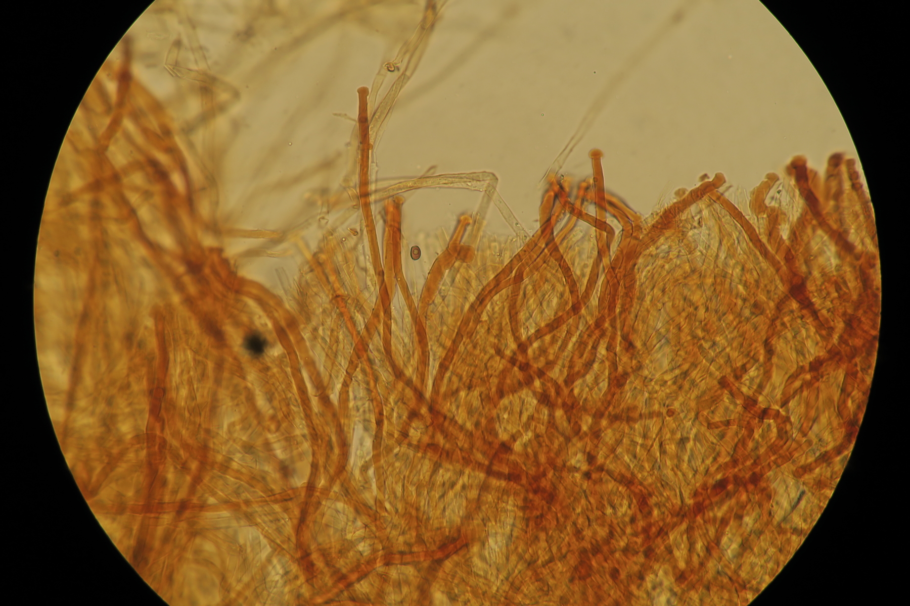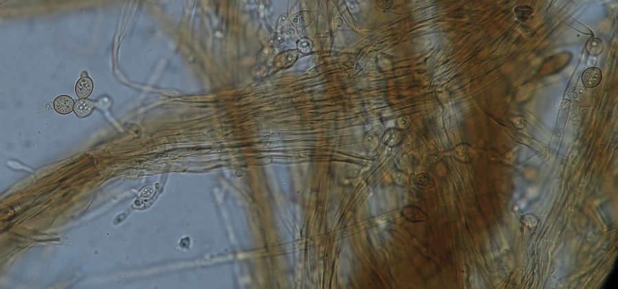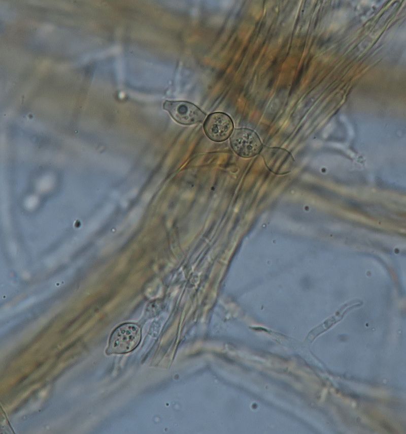 Yes, I haven't grasped very well the concept of monomitic / dimitic / trimitic, generative hyphae, skeletal hypha, etc when examining under the microscope. They just look like a brush of unspecialised mycelia entangled into each other. I had a look again this morning and I an interesting parasite!