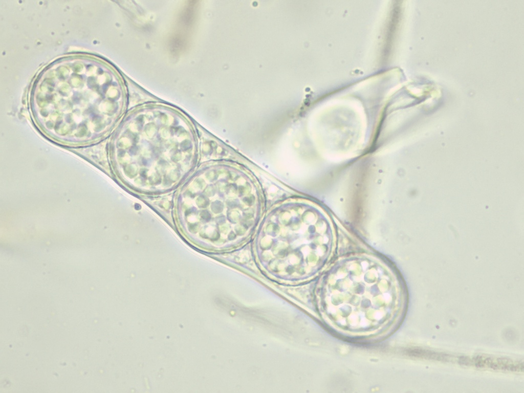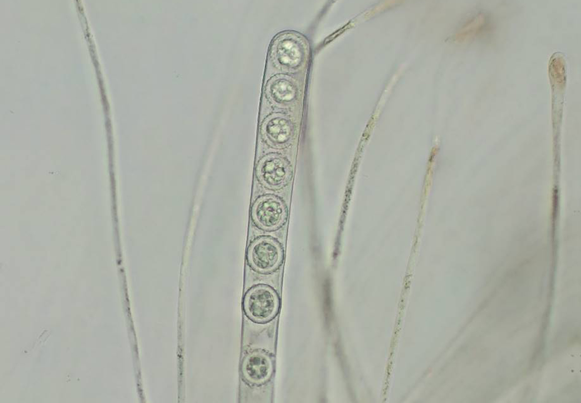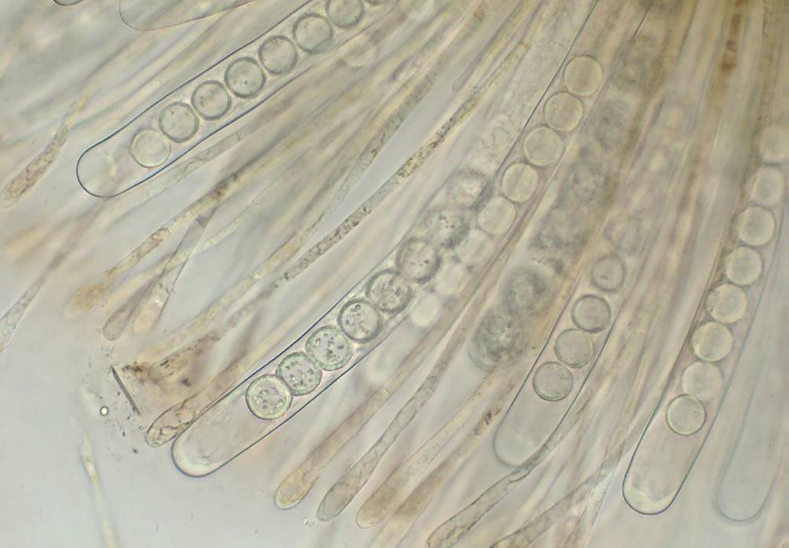 Die Asci ca. 280µ lang, Sporen uniseriat