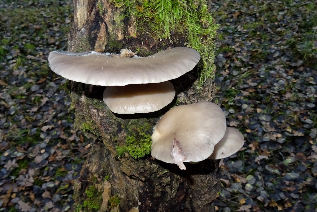 unerwartet habe ich heute Austernseitlinge an einem relativ jungen / dünnen Eichenstamm gefunden.