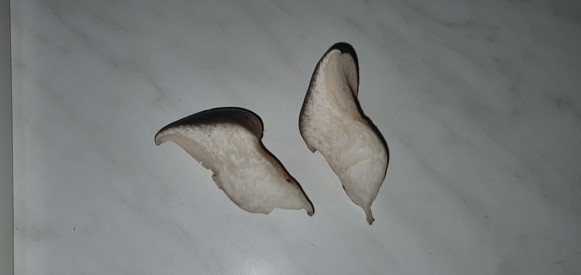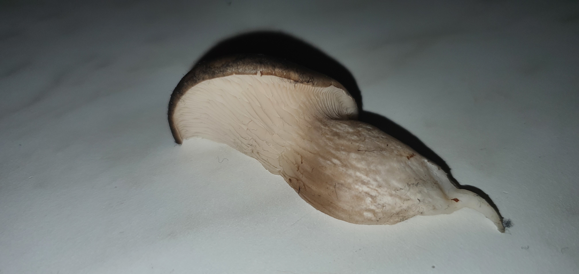 ich habe heute beim spazieren gehen an einem Teich vor einer abgestorbenen Weide gestanden, an der bis in 5m Höhe sehr große weiße Pilze am Baum wuchsen. War so eine Weide mit 3 Stämmen nebeneinander. Zwei trocken, einer schlägt wieder aus. Direkt am Wasser. Und neben dem mit den weißen Pilzen, wo ich definitiv gar nicht weiß, worum es sich handeln könnte, entdeckte ich ein Büschel Seitlinge, etwa 25cm über dem Boden. Alle noch relativ klein, das war der größte. Die wuchsen so übereinander wie Ziegel. Am Baum eher grauschwarz, zu Hause und auf den Bildern eher bräunlich wirkend.