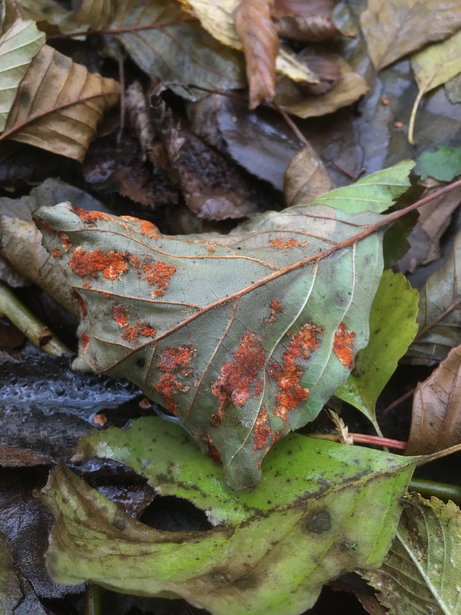 Ein Rost an Erlenblättern