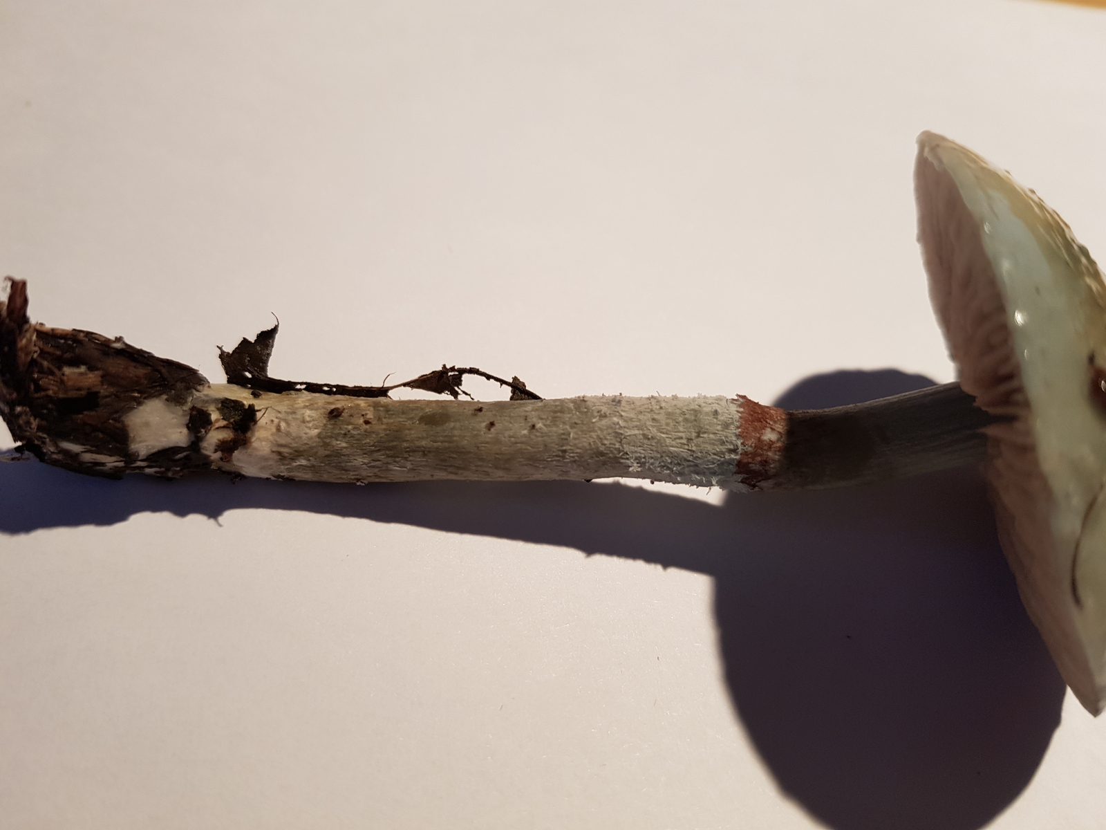Ringreste bräunlich; Stielfarbe blaugrün; schuppig-flockige Stielrinde