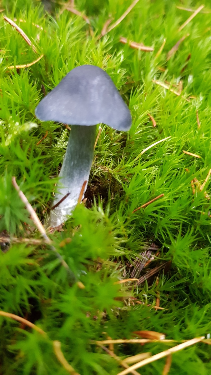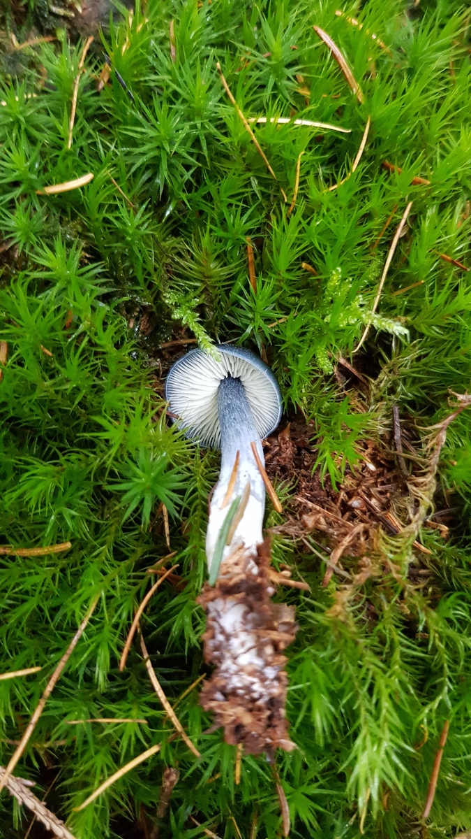 Ich war wegen der weißen Lamellen erst bei den Rüblingen oder Helmlingen (da habe ich immer noch Schwierigkeiten, die klar zuzuordnen), habe da aber keine derart auffällige Art gefunden. Insofern hoffe ich auf rosa Sporenpulver und hoffe, dass ich mit dem Stahlblauen Rötling Entocybe nitida (oder wie der gerade aktuell mit Vornamen heißt) richtig liege.