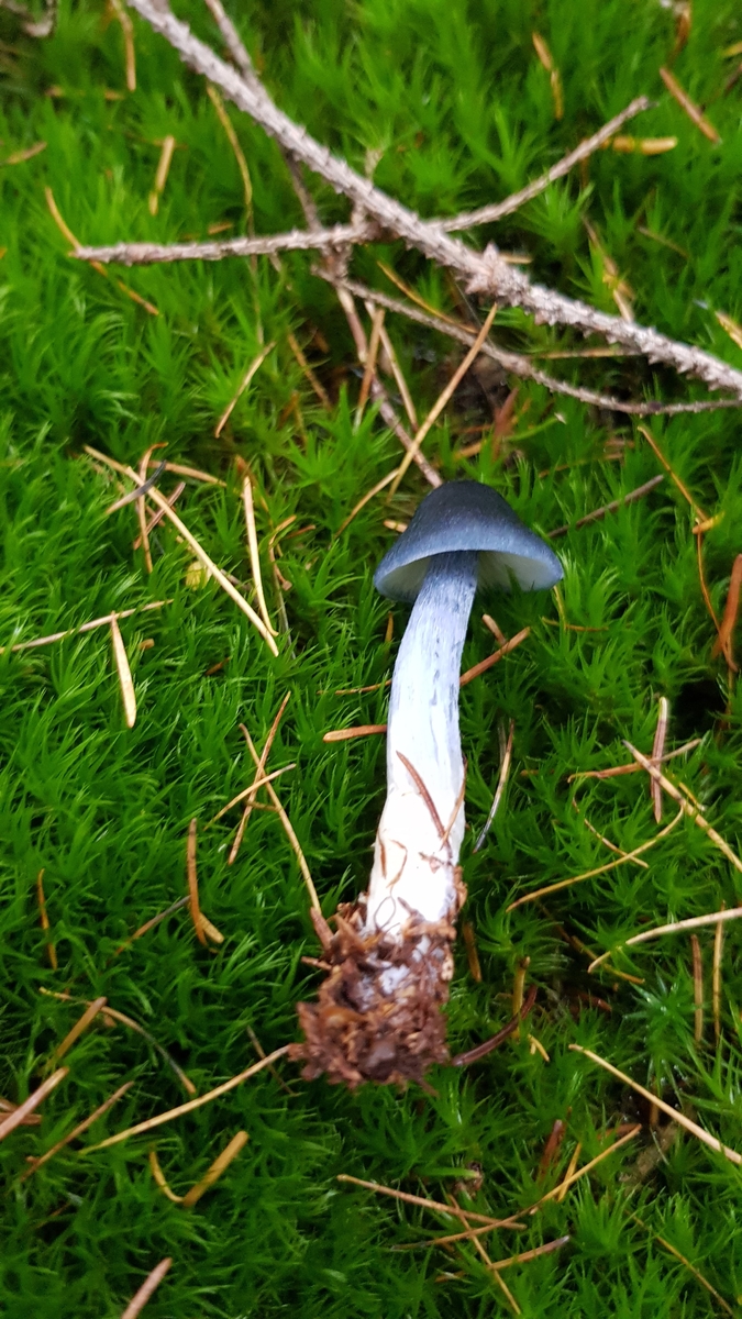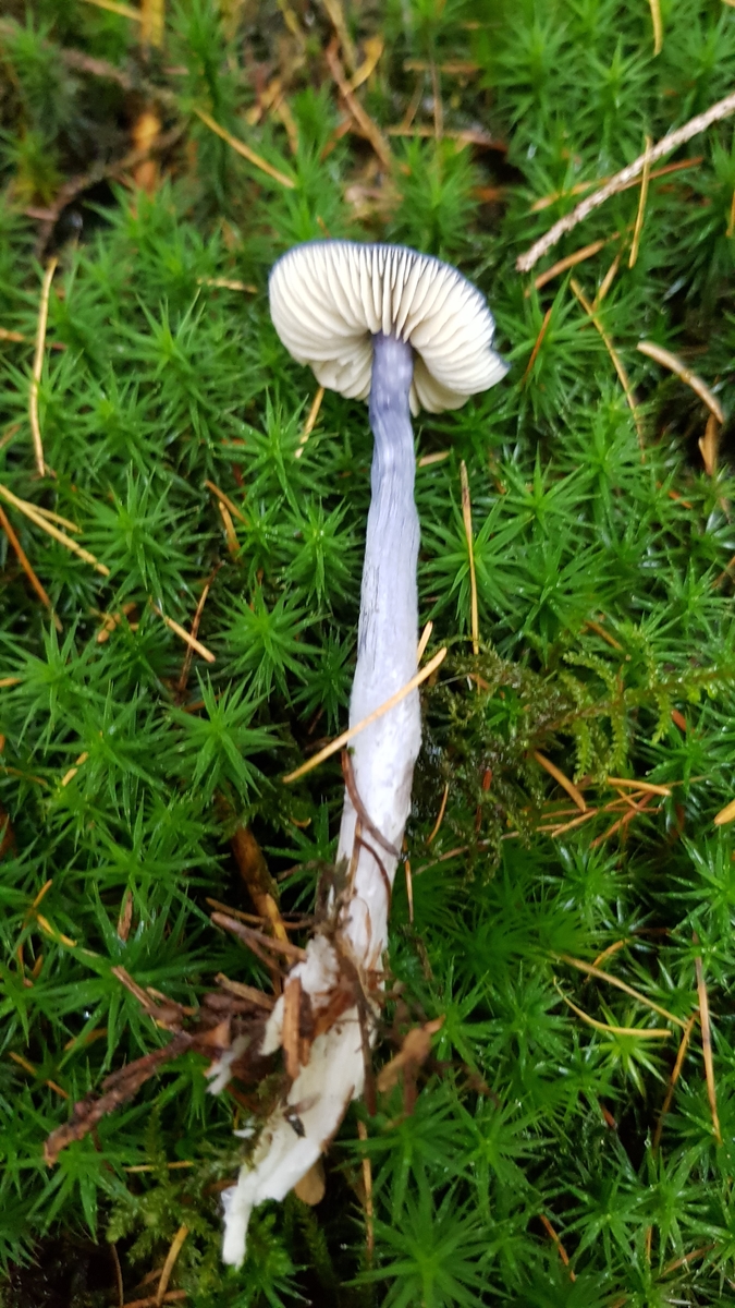 Stiel: oben ebenfalls dunkelblau, etwas heller als der Hut, ca. 8 cm lang. unten weiß
