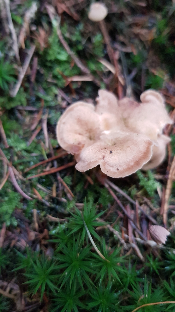 Den ersten Pilz lasse ich gerade aussporen. Er wuchs im Fichtenwald in einer kleinen Gruppe (nicht büschelig) unter jungen Fichten im Moos.
