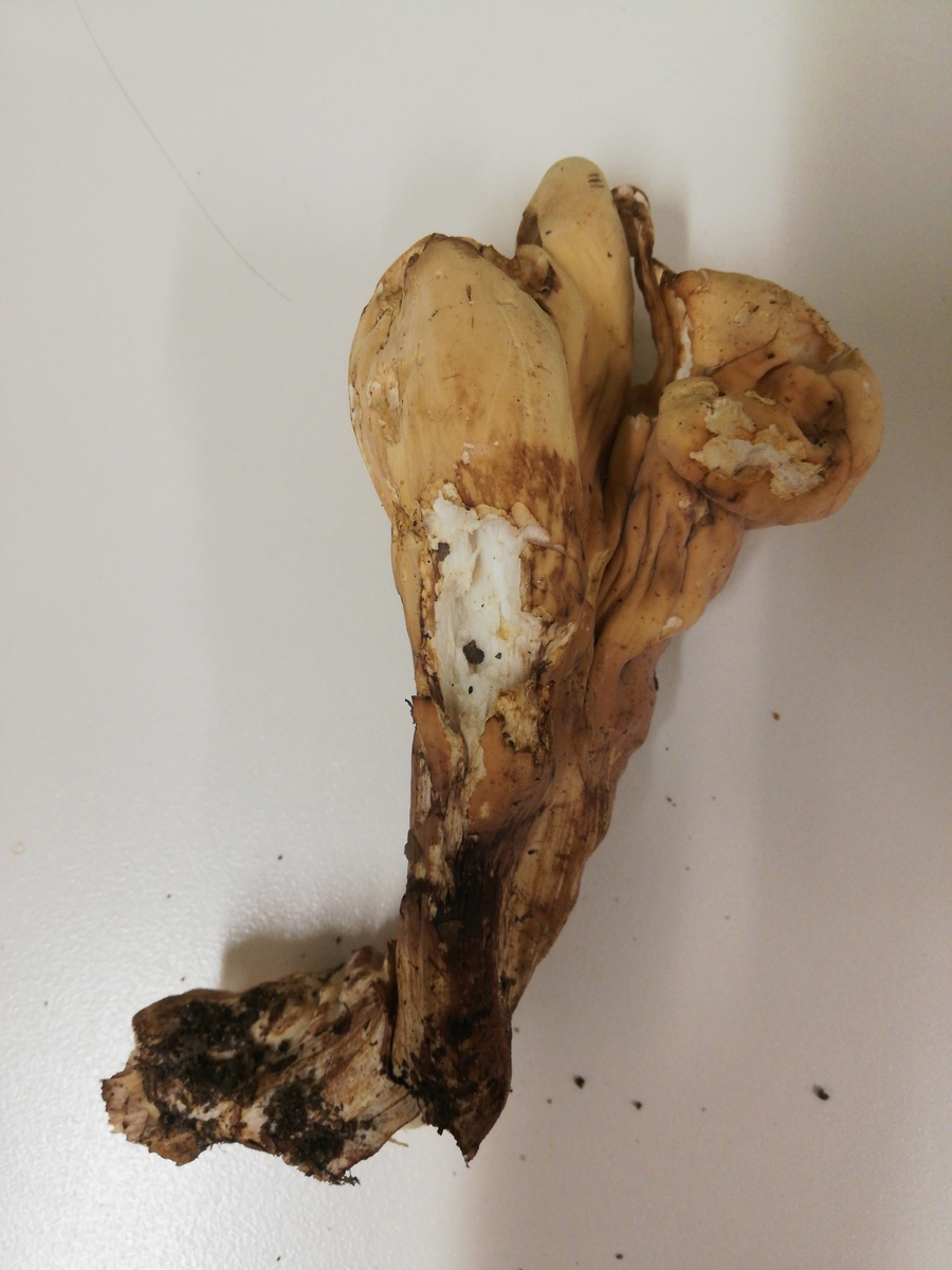 Fruchtkörper sehr weich und pampig, Farbecht fotografiert (obwohl Kunstlicht), nach dem Querschnitt immer noch keine Erleuchtung meinerseits: