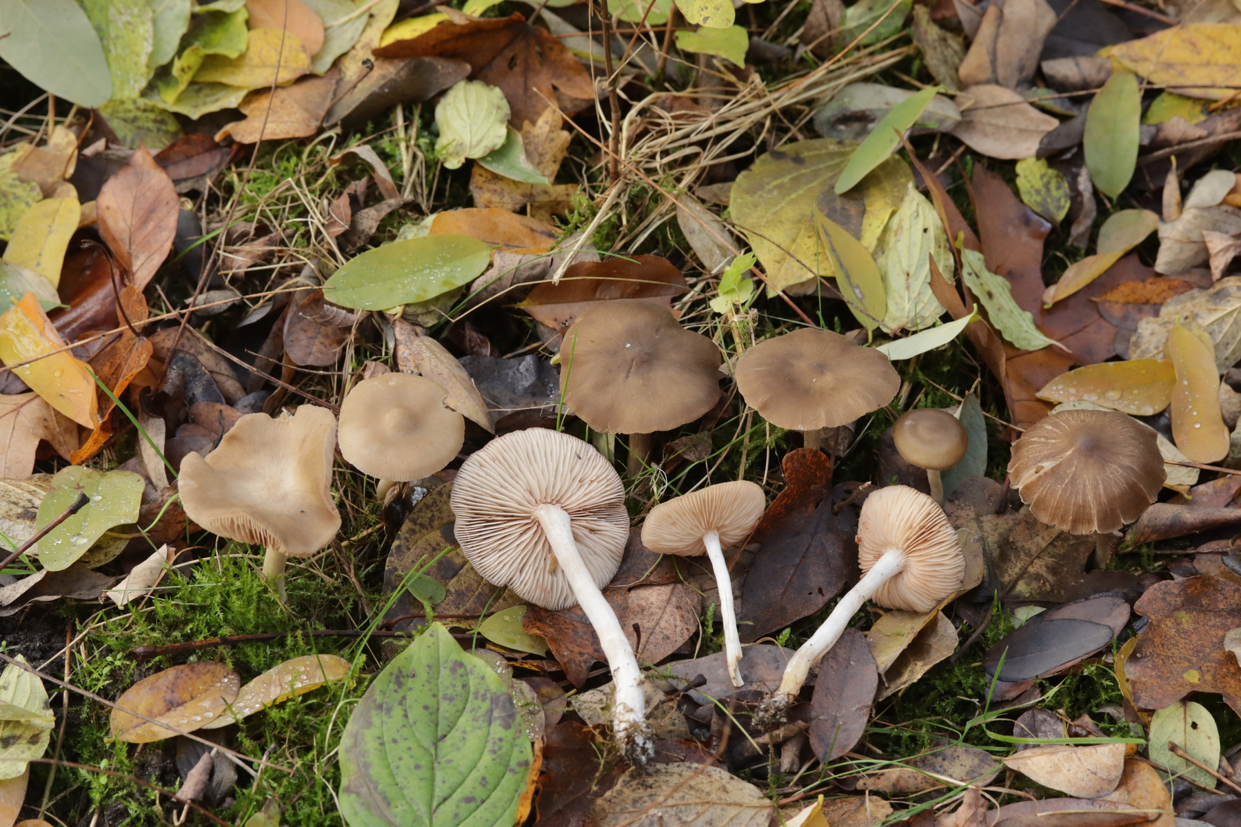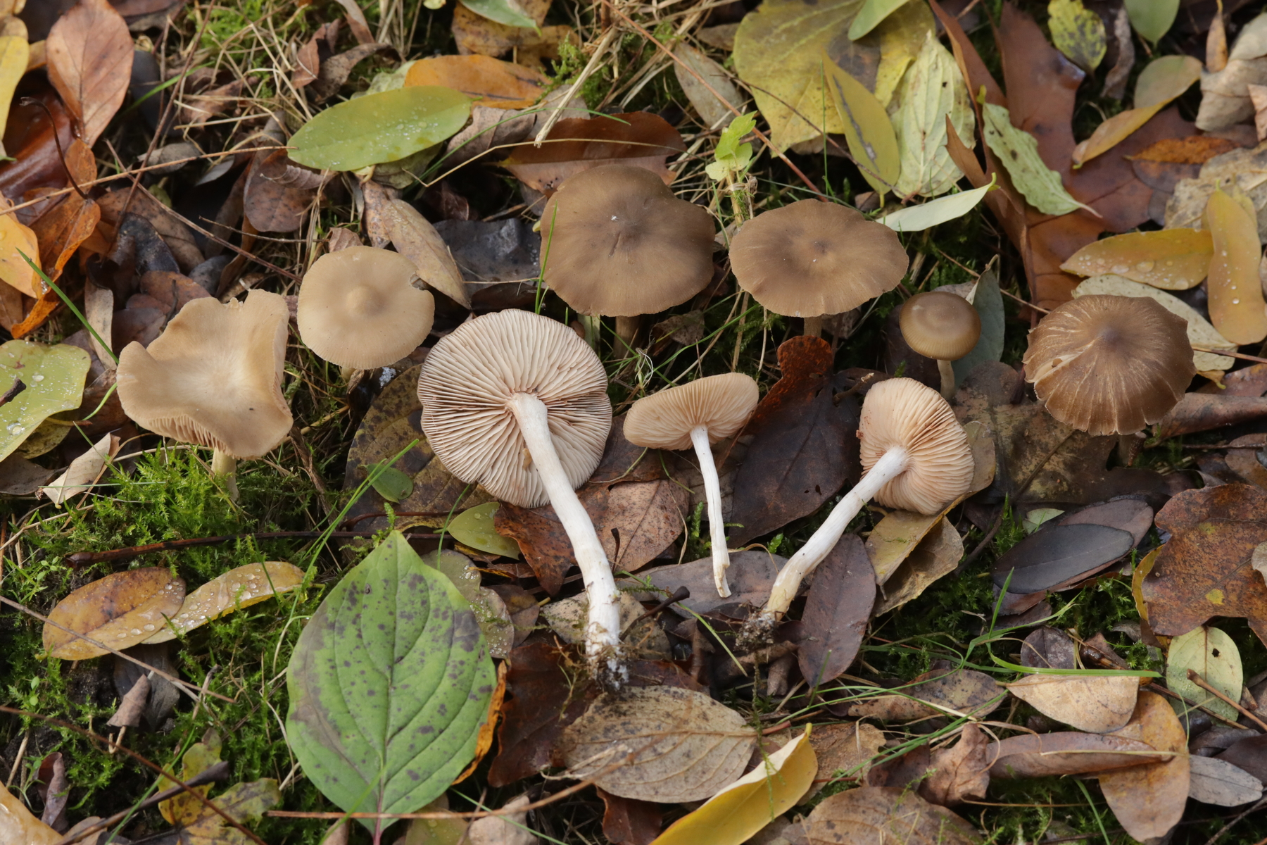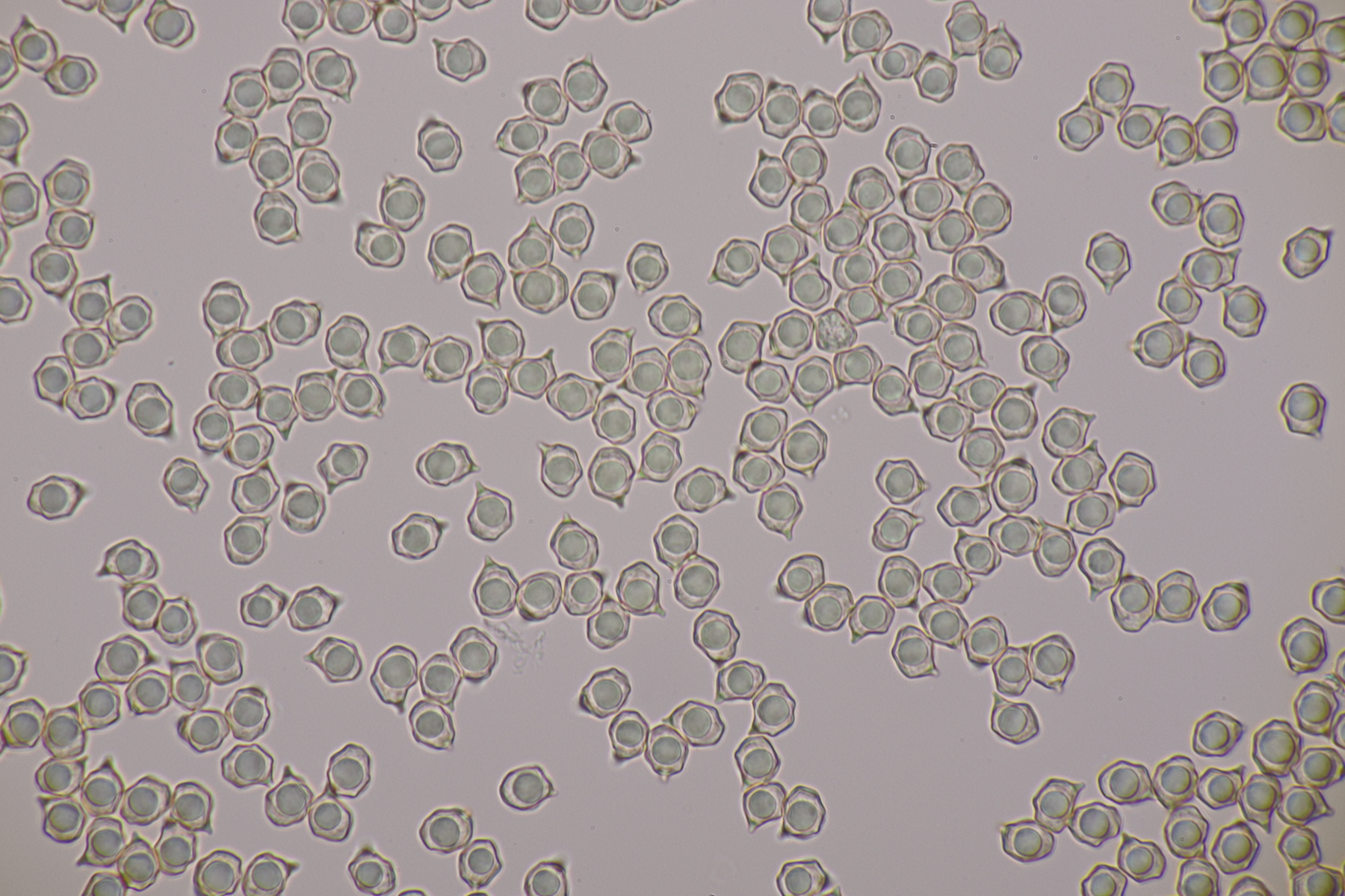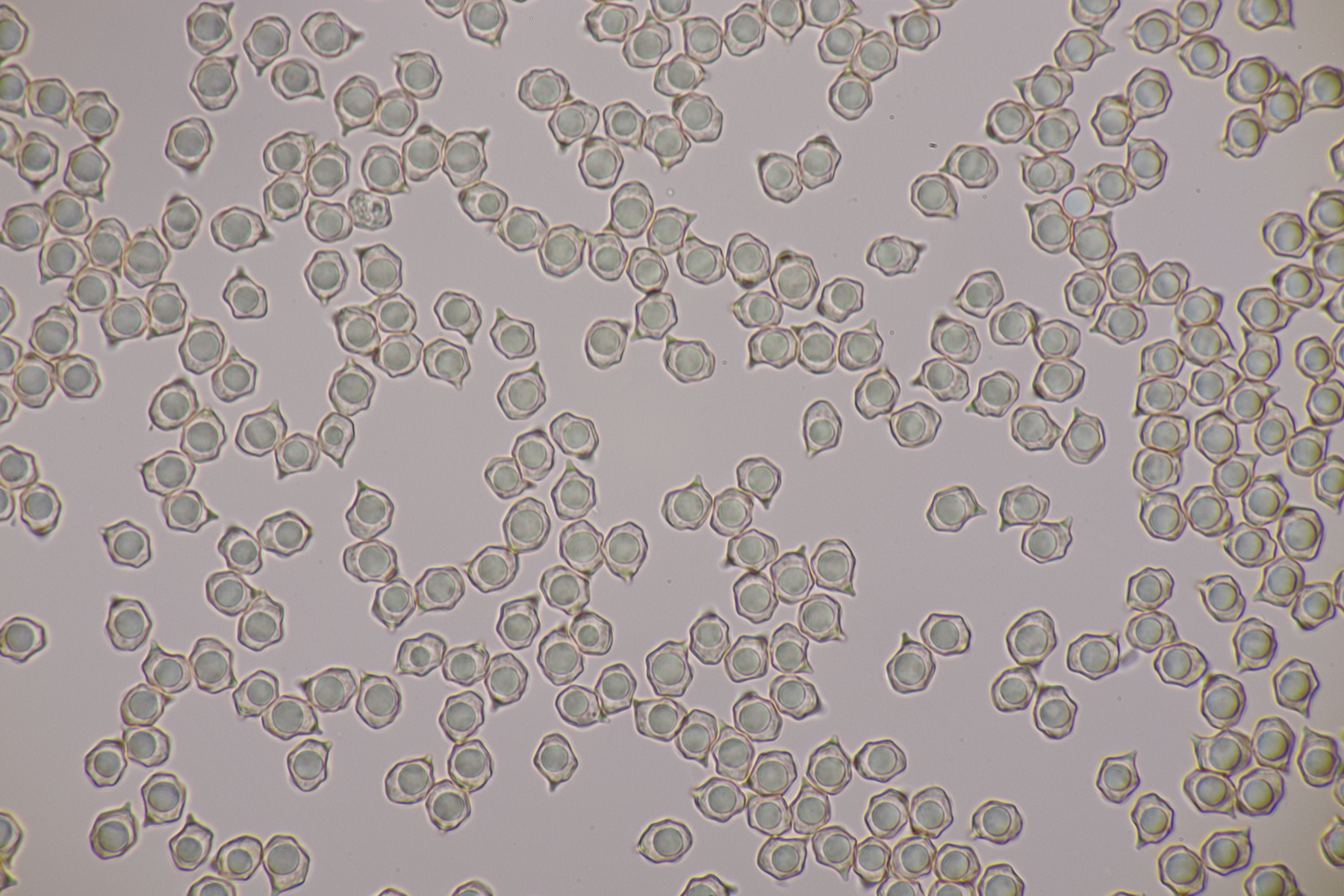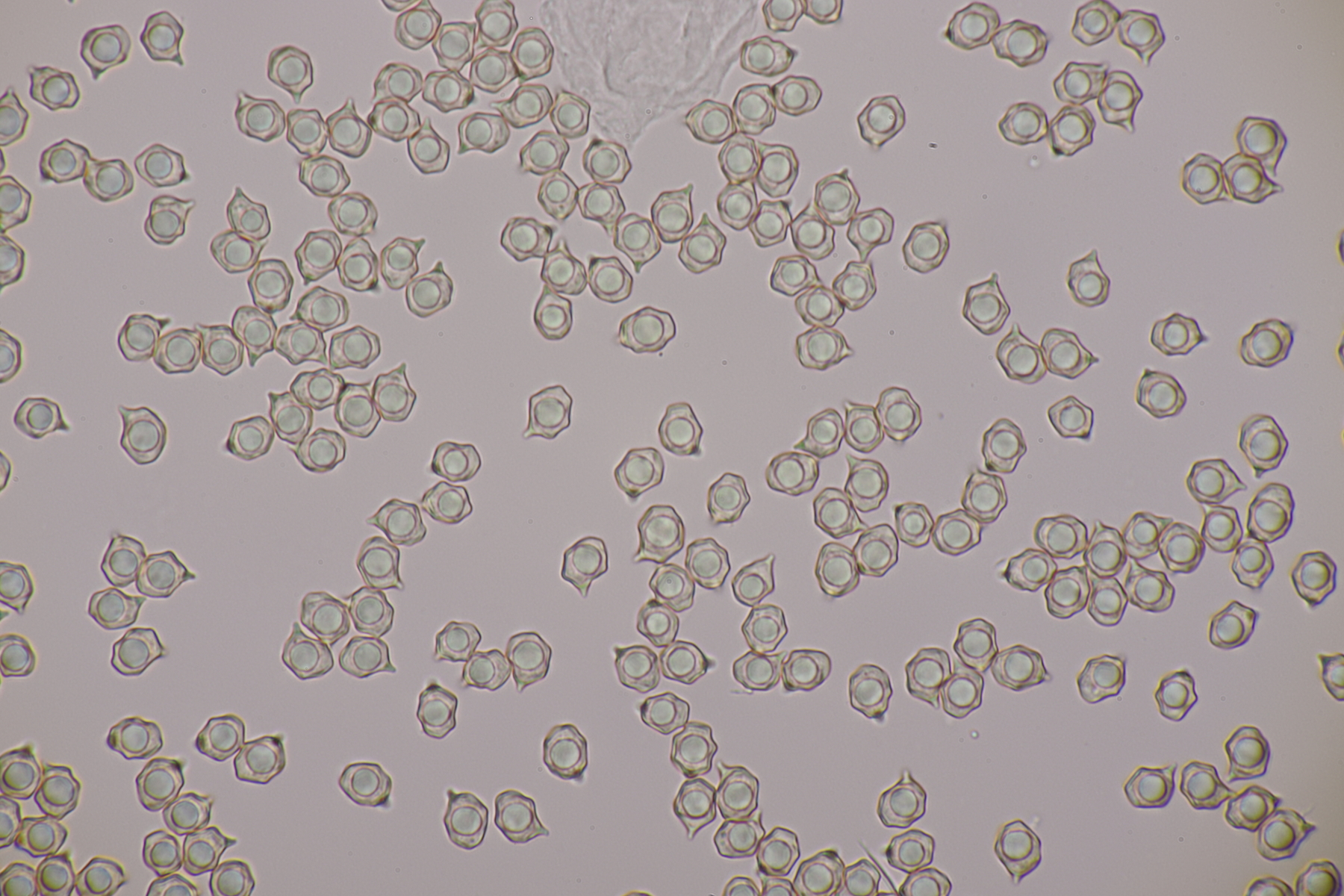 1. Ein Rötling unter diversen Laubbäumen. Im Feld erwähnten einige Exkursionsteilnehmer einen alkalischen Geruch. Den konnte ich allerdings nicht wirklich wahrnehmen (wie riecht alkalisch überhaupt?). Zu Hause hatte ich bei einem Fruchtkörper eher den Eindruck, daß ein Mehlgeruch vorliegt. Sporen messen 7.9-9.2 x 6.1-7.7 µm, Q=1.1-1.5, bzw. 8.5+-0.4 µm x 6.8+-0.5 µm, 1.3+-0.1, Basidien viersporig mit Basalschnalle, keine Cheilozystiden, Huthaut mit intazellulärem Pigment. Damit komme ich dann erstmal bei Entoloma lividoalbum raus, den ich aber nur in kräftiger kenne. Alternativ dann Entoloma rhodopolium s.l. Was sagen die Rötlingsexperten?