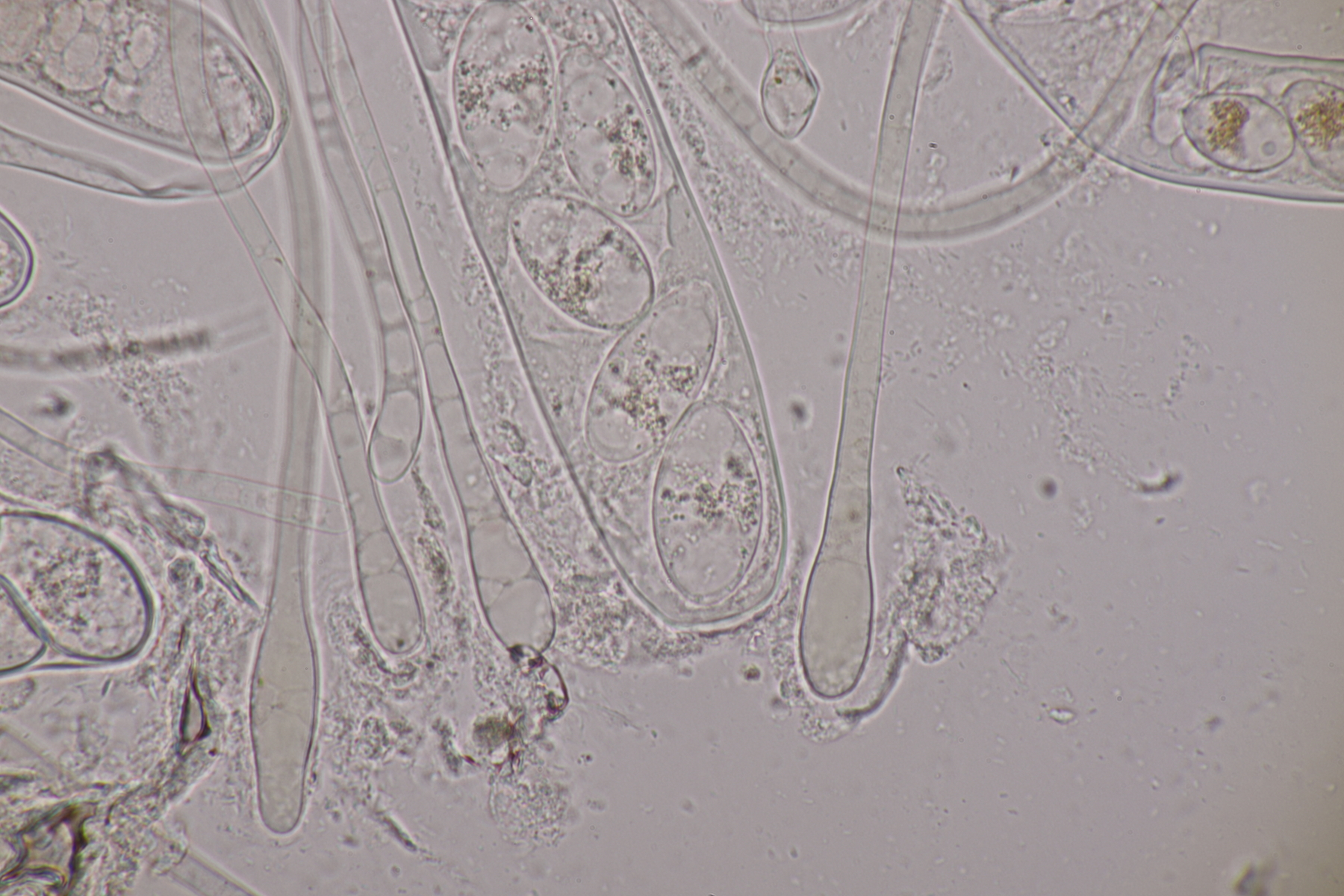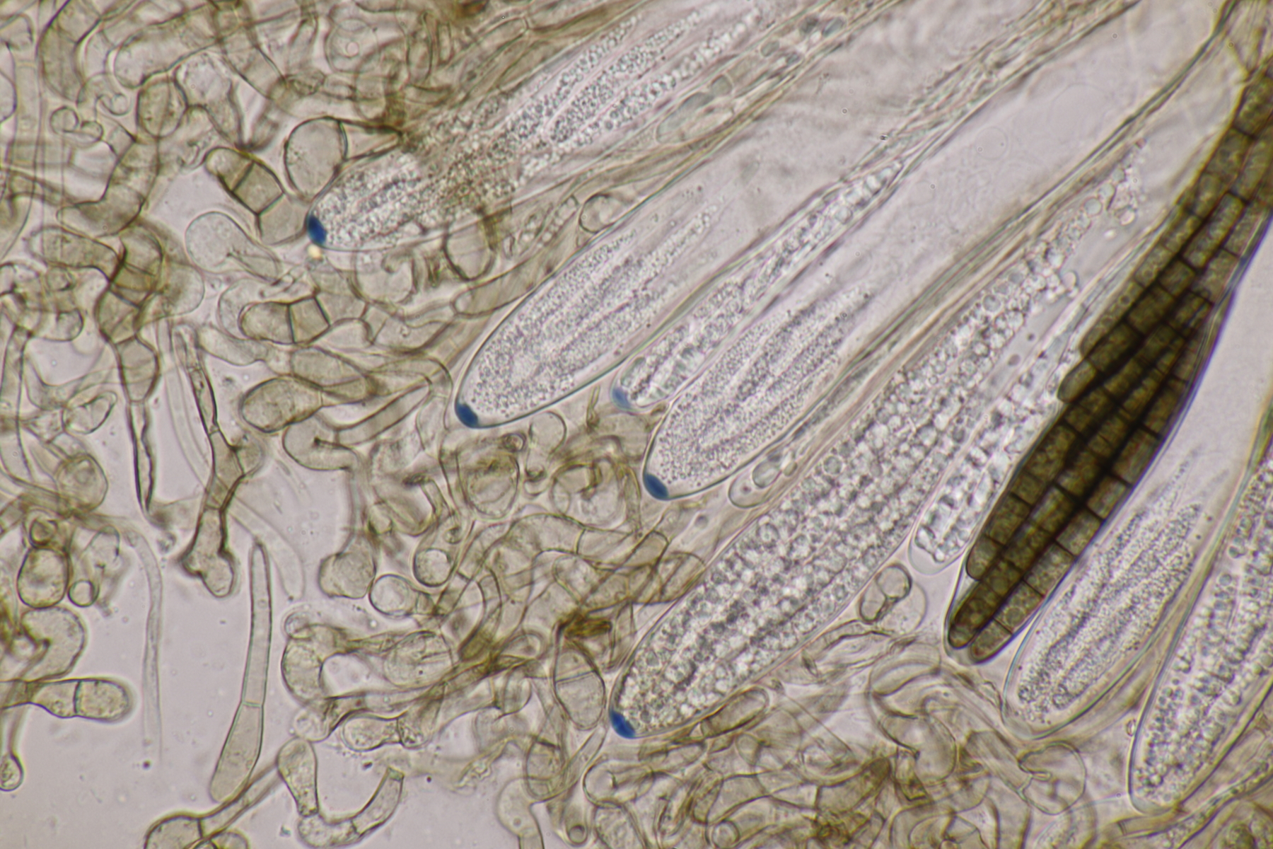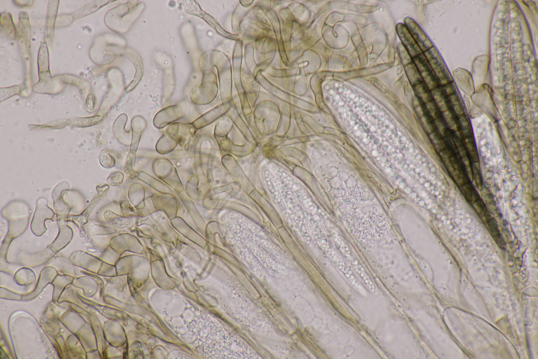 5. Und noch eine Erdzunge, von der ich allerdings kein Makrofoto habe. Sporen messen 67-80 µm, im Mittel 75 µm. Auch noch mal Geoglossum cookeanum mit etwas untypischen Paraphysen?