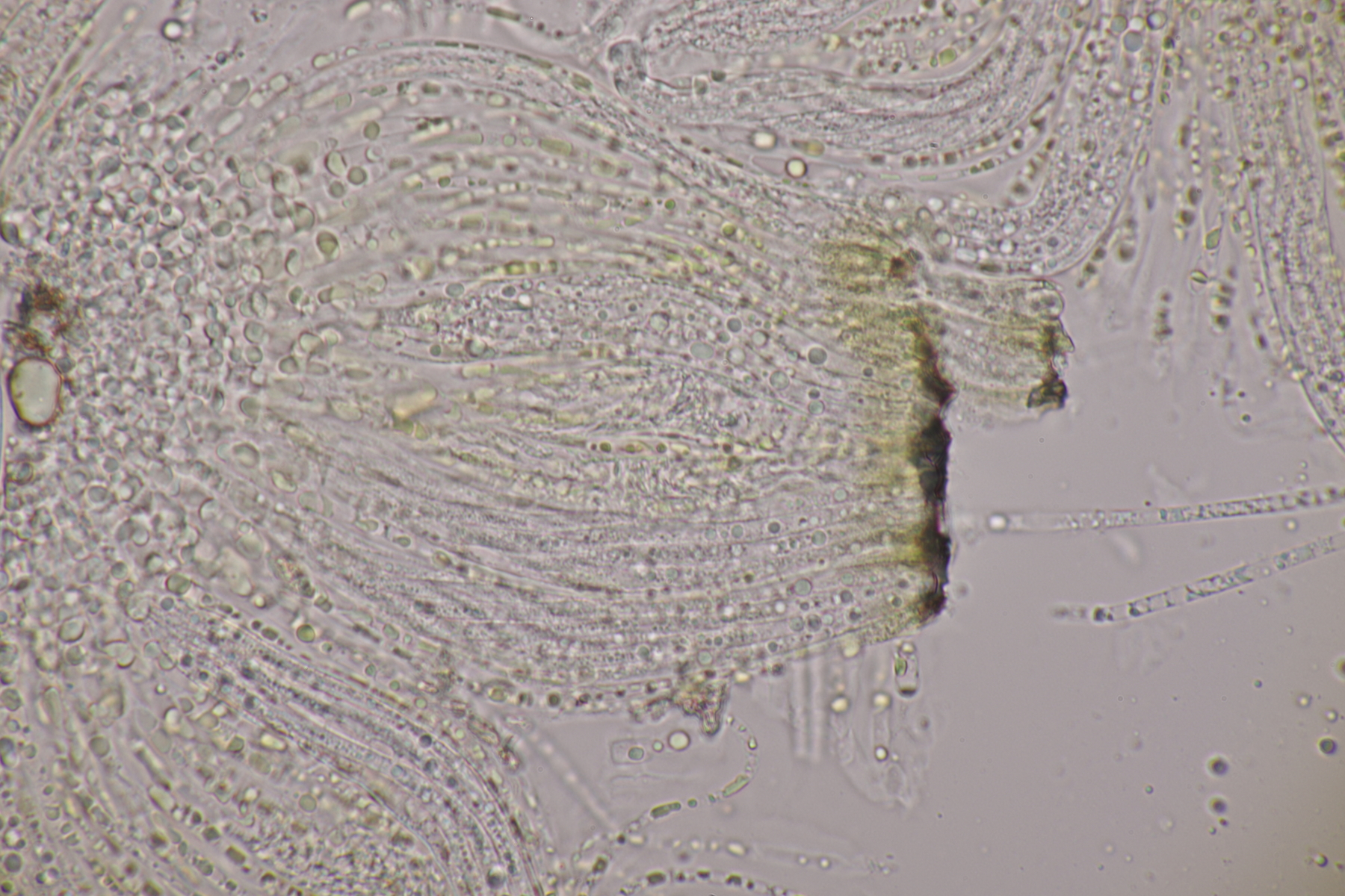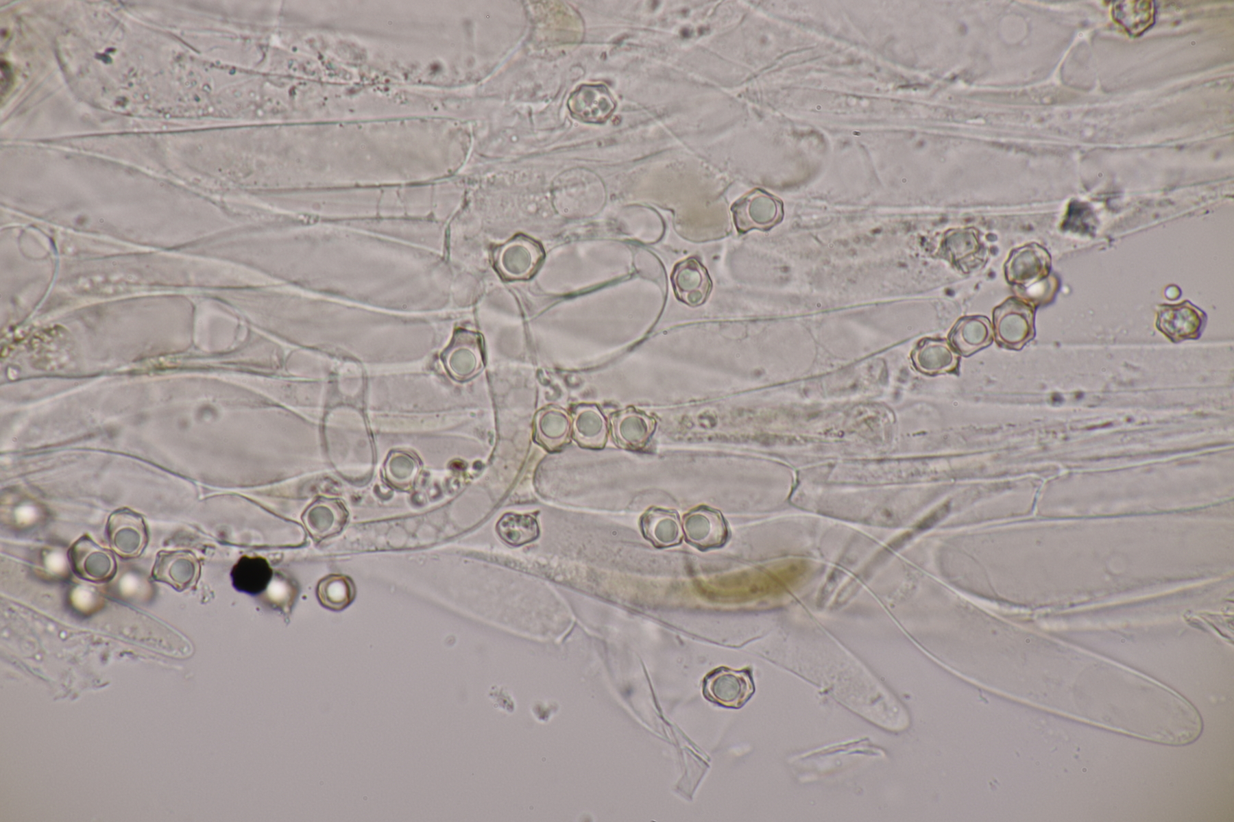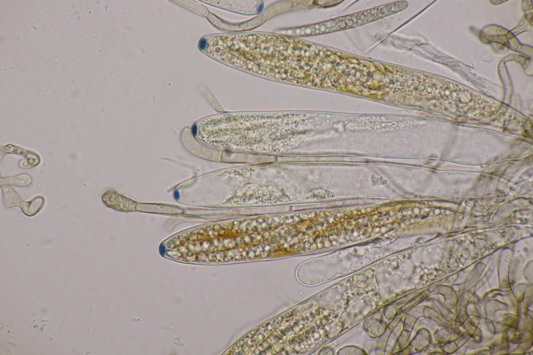 5. Und noch eine Erdzunge, von der ich allerdings kein Makrofoto habe. Sporen messen 67-80 µm, im Mittel 75 µm. Auch noch mal Geoglossum cookeanum mit etwas untypischen Paraphysen?