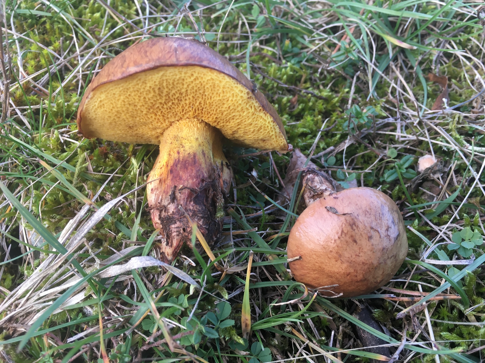 Doch ein Photo wert, und ein Erstfund, waren diese Schmierröhrlinge unter Fichte und Kiefer, die ich für ringlose Butterpilze (S. collinitus) halte: