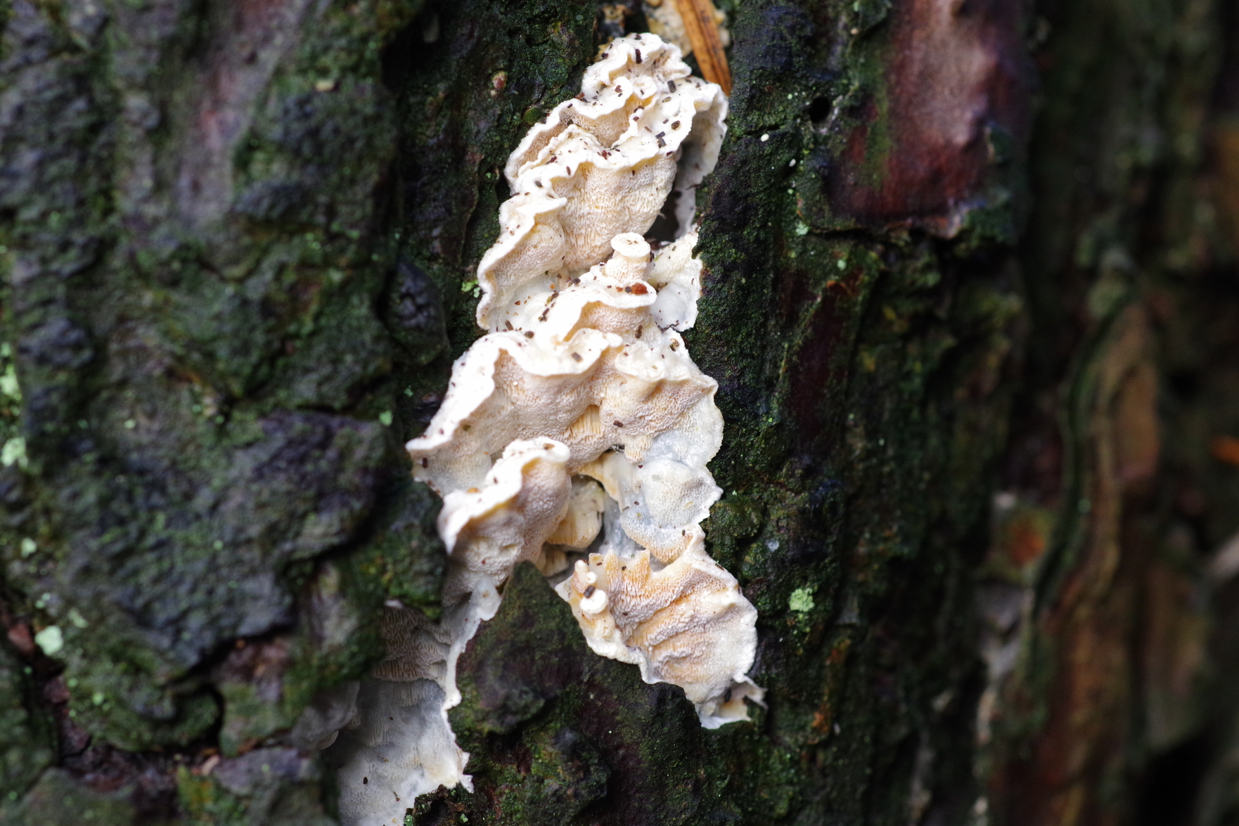 weiß-rosa-oranger Porling an Kiefer → Skeletocutis amorpha