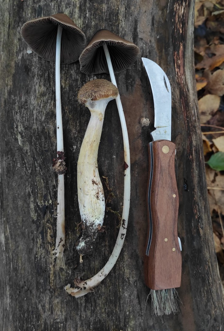 1. Den Anfang machen ein paar hochgewachsene Parasola conopilea und Armillaria gallica, der hier der übliche "Auwald-Hallimasch" ist.