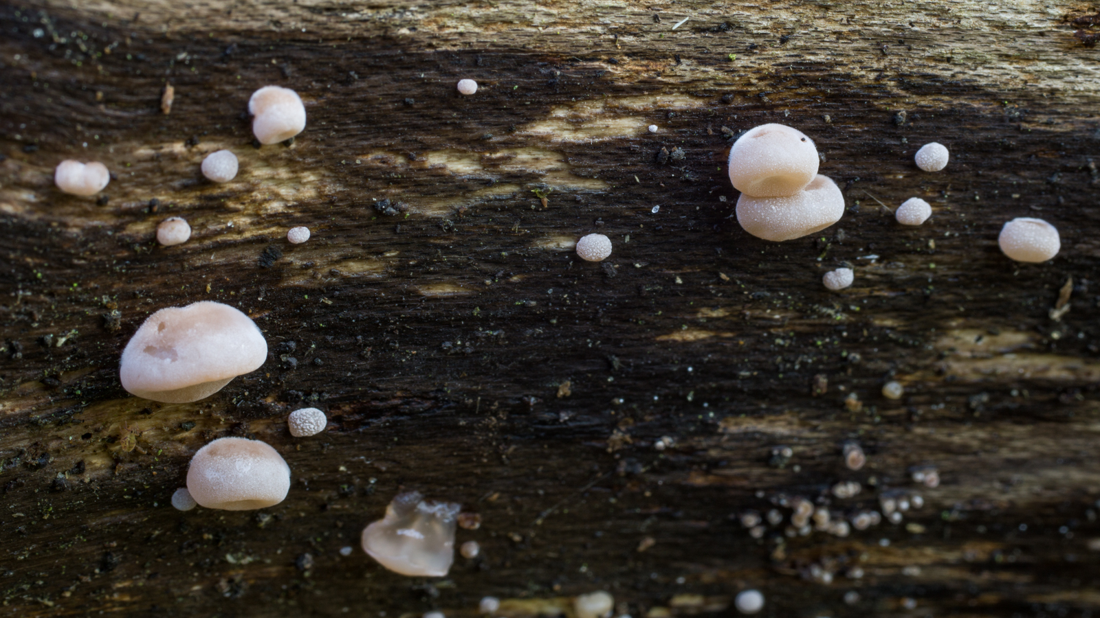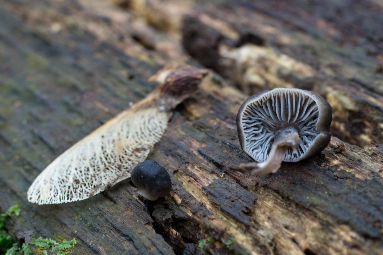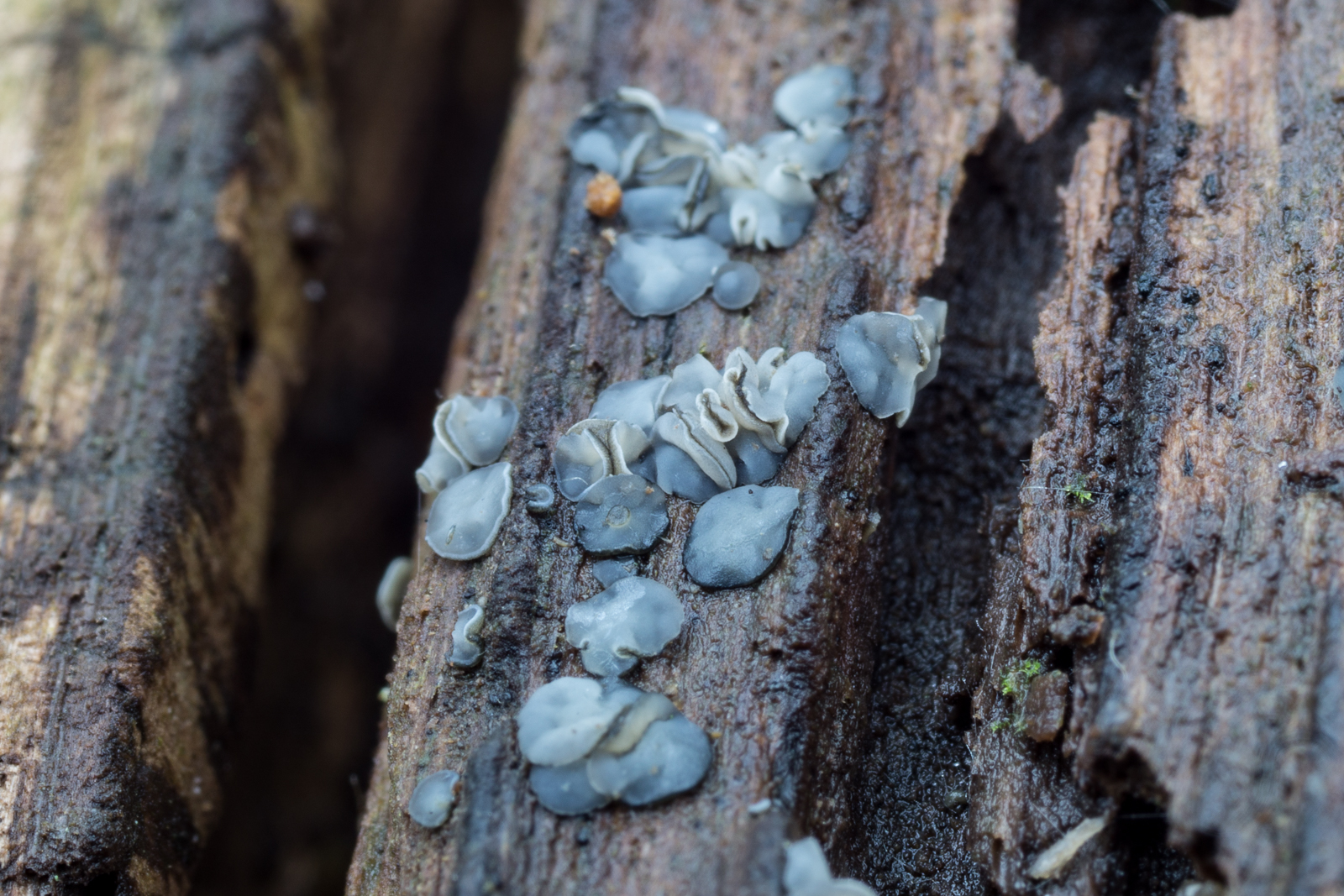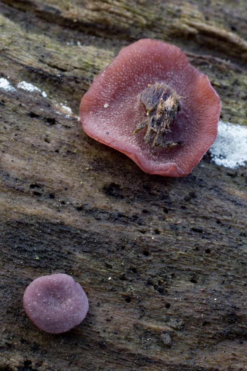2. Die hier fand ich an einem dicken Laubholz-Stubben. Ist das eine Mollisia? Die Gattung ist ja ziemlich groß, das schreckt etwas vom Einstieg ab muss ich zugeben, zumal Ascos eh nicht so meins sind und ich das Substrat nicht kennen. FK nur wenige mm groß. Mikros schaffe ich heute nicht mehr, mal schauen ob morgen noch was da ist von den kleinen Dingern.