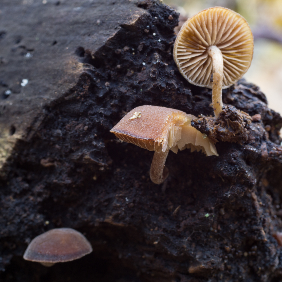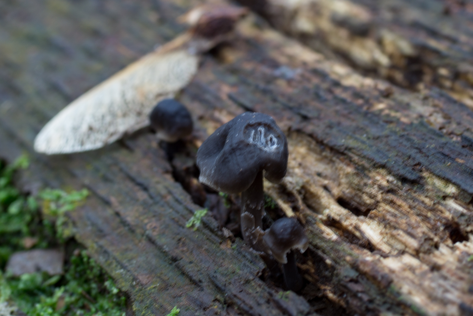 4. Ebenfalls an dem Stumpf weitere schwarze, verwackelte, mir unbekannte Helmlinge.