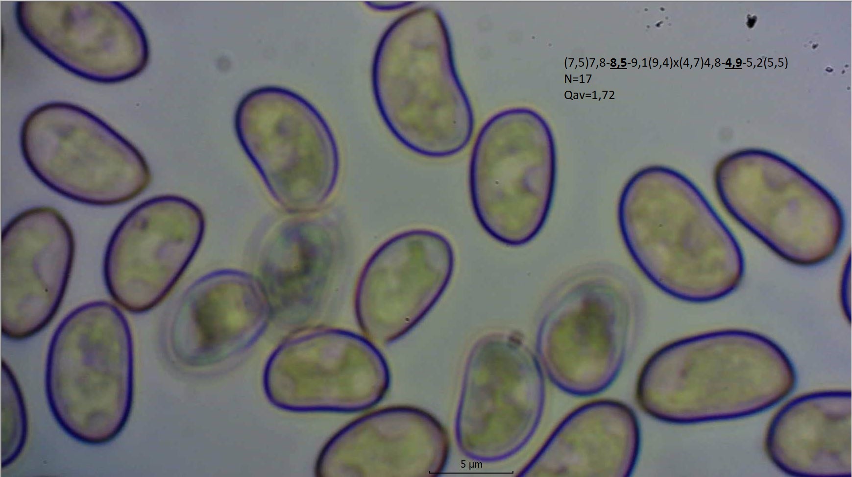 Sporen leicht bohnenförmig mit sehr kleinem Apikulus.