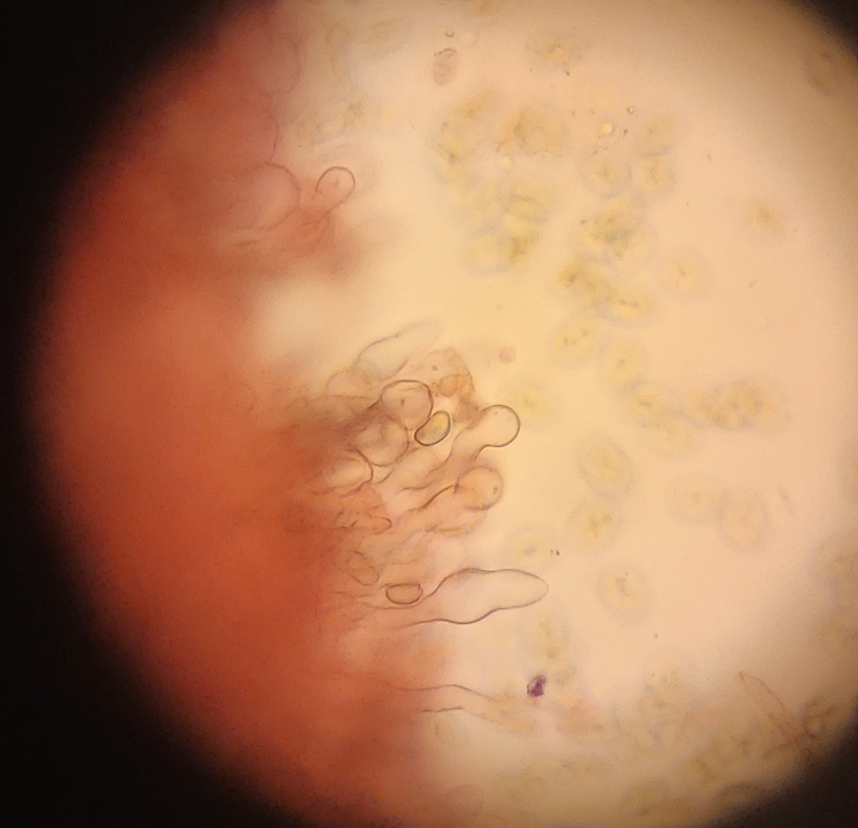 11. Den Abschluss machte dann diese Simocybe. Ich würde sie wegen der etwas größeren Sporen und den hauptsächlich kopfigen Cheilos Simocybe sumptuosa nennen, wenn keine Einwände sind?