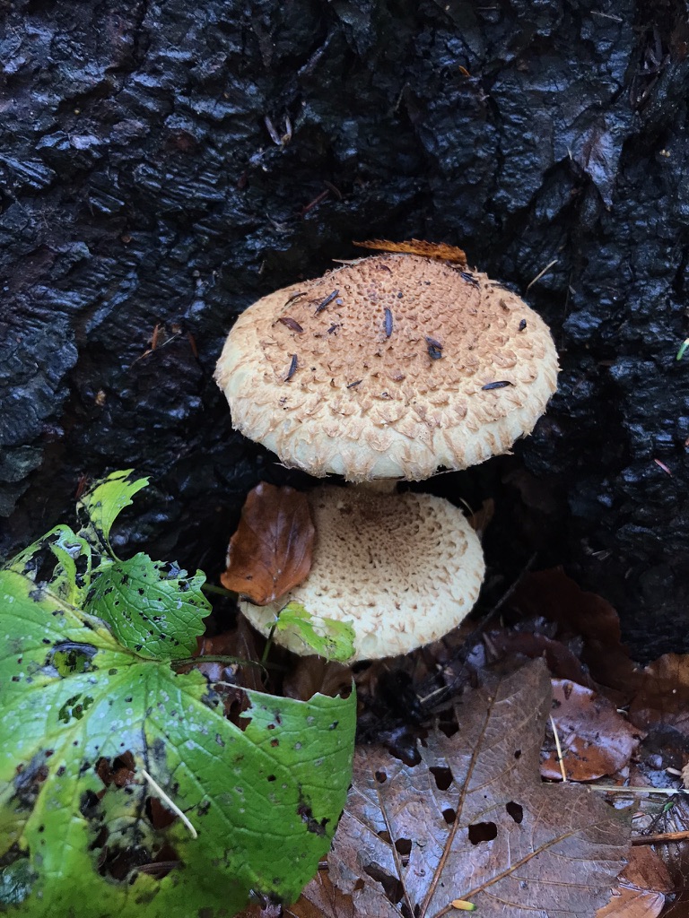 auf meiner Waldtour bin ich an einem alten Buchenstumpf auf den folgenden Pilz gestoßen. Alles spricht für mich für den sparrigen Schüppling mit der Ausnahme, dass die Exemplare keinen Ring haben. Wurde der nur von den ebenfalls sehr präsenten Schnecken abgefressen, oder habe ich hier doch etwas anderes gefunden?