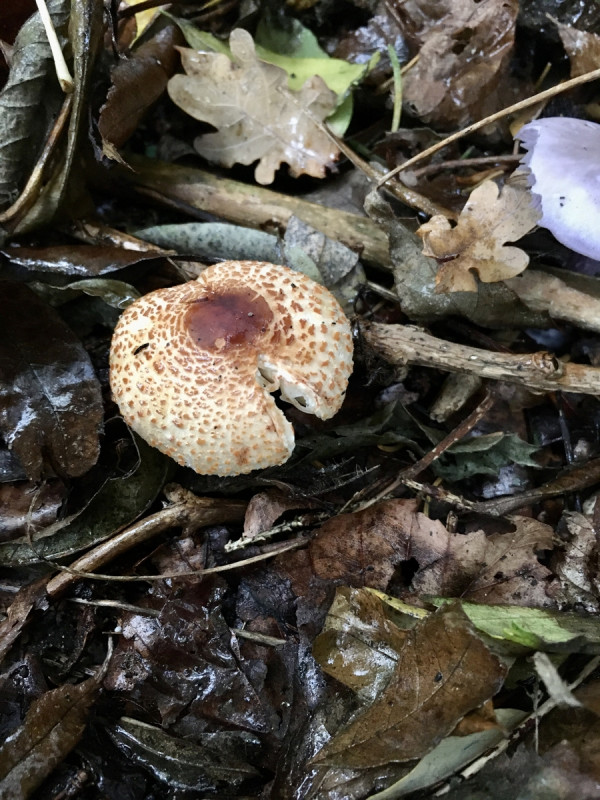 Erinnerte mich entfernt an eine große Lepiota cristata (Hutdurchmesser bis 5-6 cm), nur mit cremefarbener Grundfarbe und kontrastreicherer Hutbeschuppung.