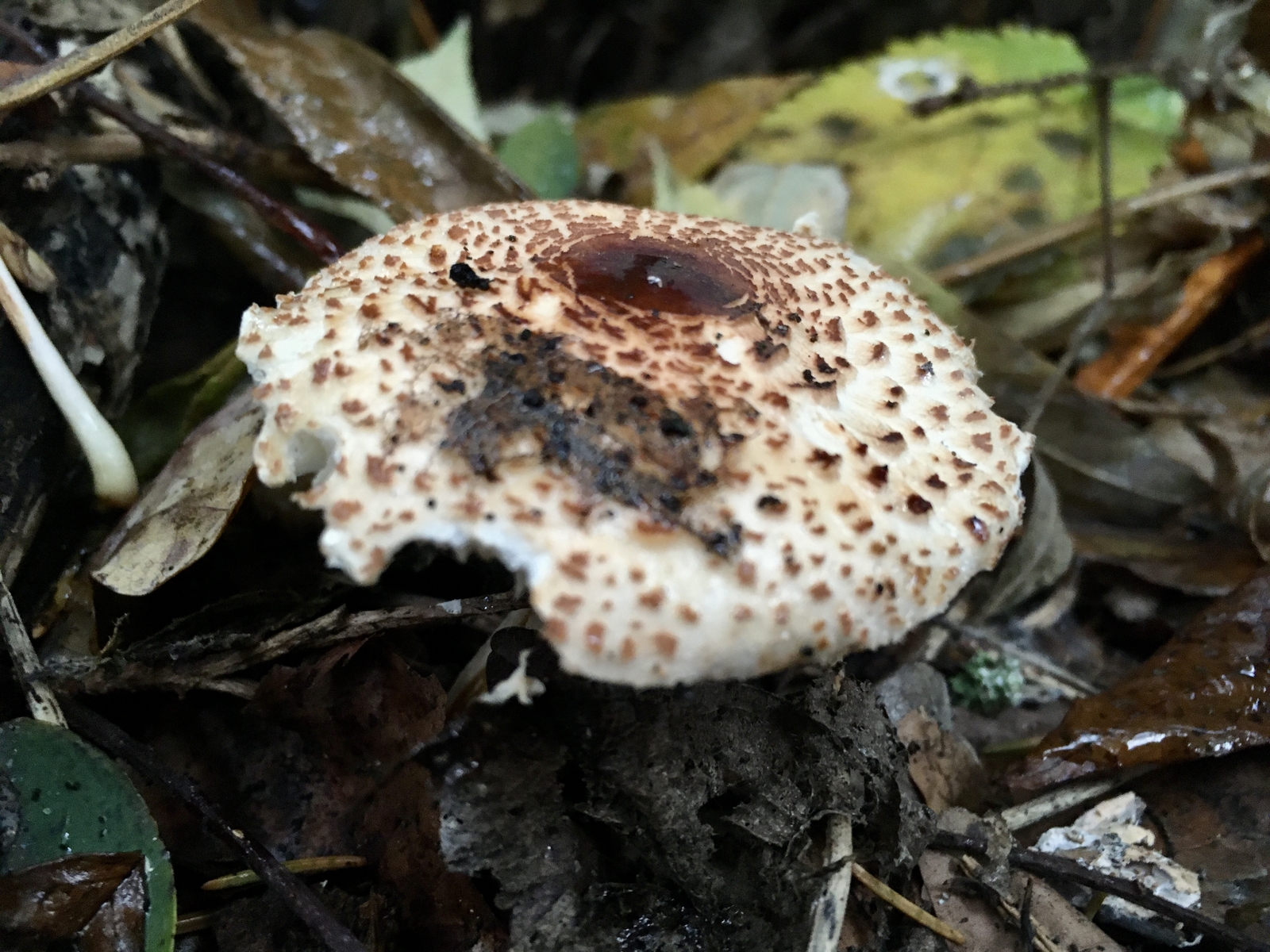 Erinnerte mich entfernt an eine große Lepiota cristata (Hutdurchmesser bis 5-6 cm), nur mit cremefarbener Grundfarbe und kontrastreicherer Hutbeschuppung.