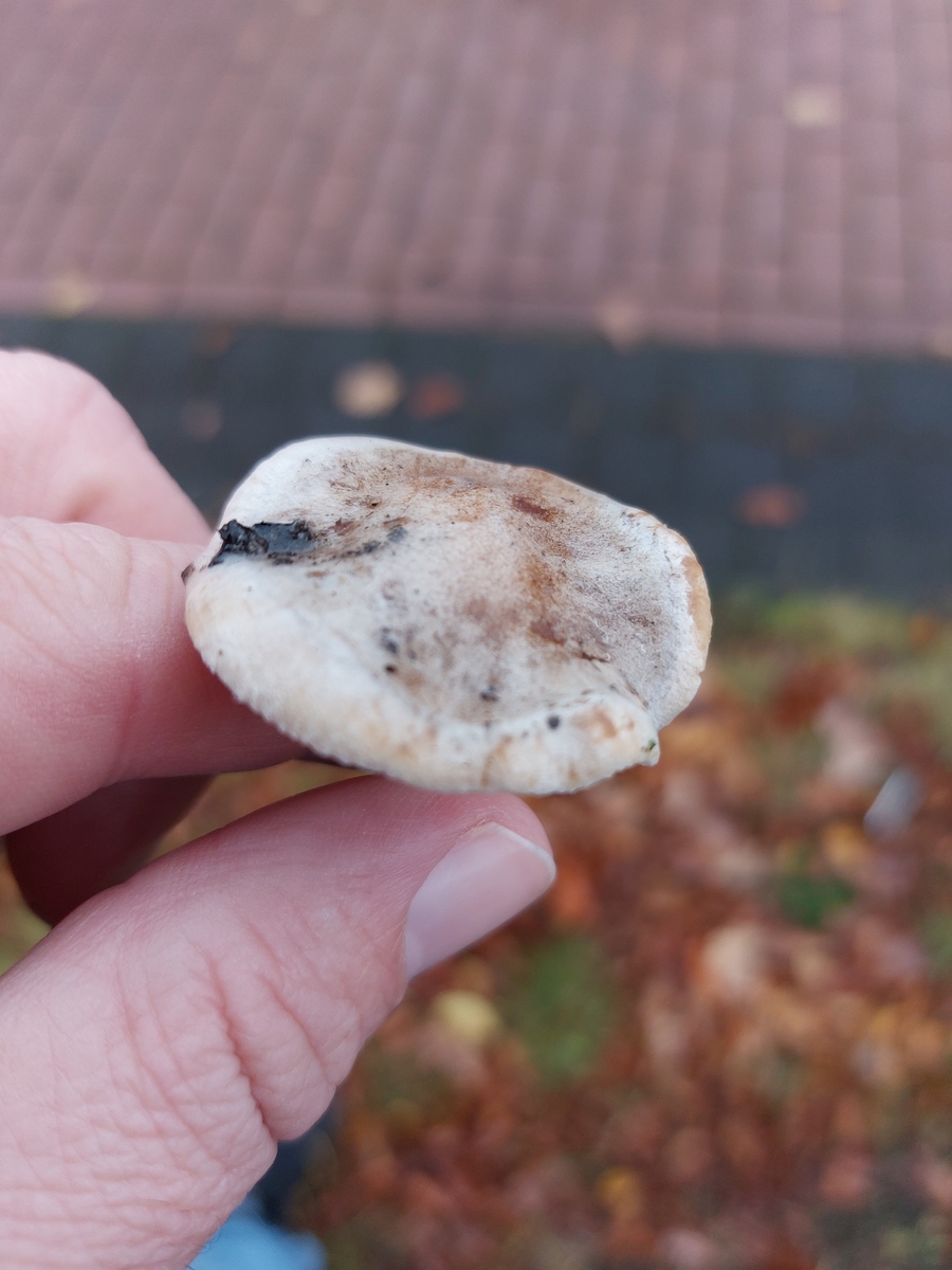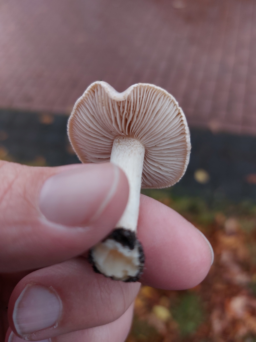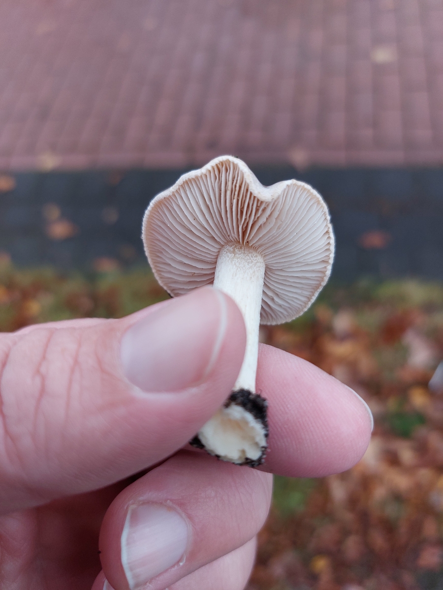 Ich habe heute unter Laubbäumen am Straßenrand diesen Pilz gefunden, dieser hier hatte die grösse von einem Euro Stück. Da war noch einer der war größer. Geruch war nur nach Pilz keine andere Note war zu riechen. Es gab auch keine Manschette oder Ring. Ich habe zwar den ganzen fk rausgeholt es sieht aber denoch aus wie abgebrochen. Hier die Bilder zu dem Pilz