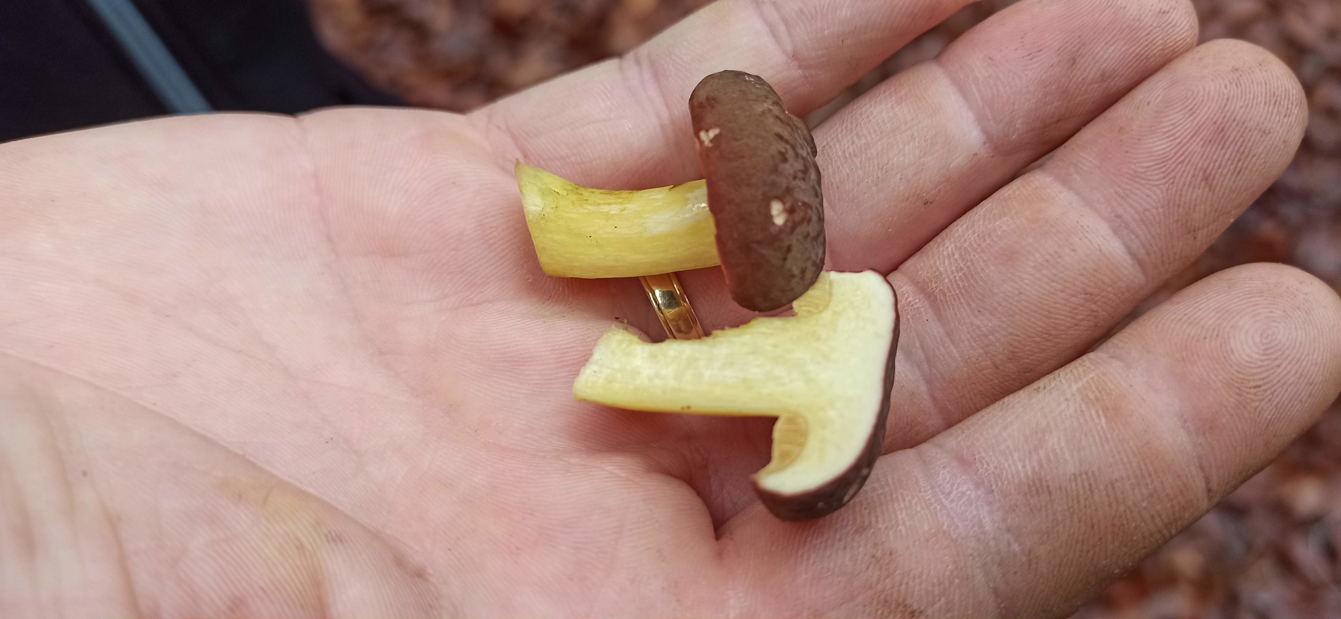 Bei dem Röhrling fehlt halt die Stielbasis, aber mit deinen weiteren Angaben wird Xerocomellus pruinatus noch ein kleines bisschen wahrscheinlicher.