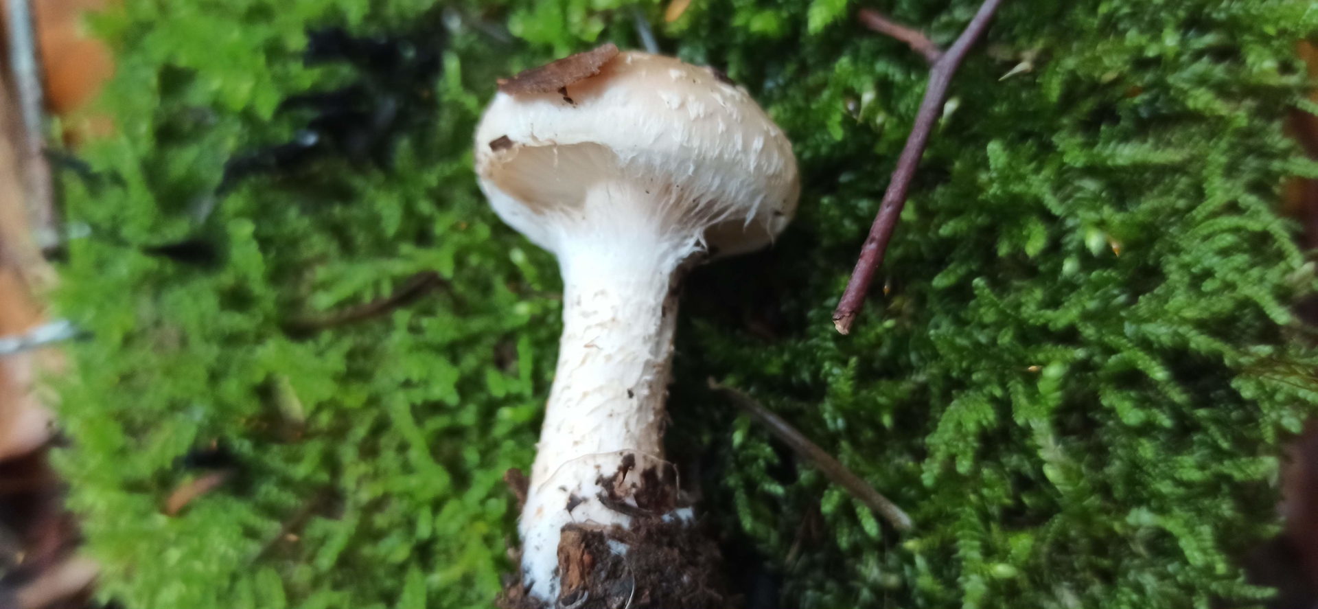 Tonweißer Schüppling? Schleimiger Hut mit Velumresten.