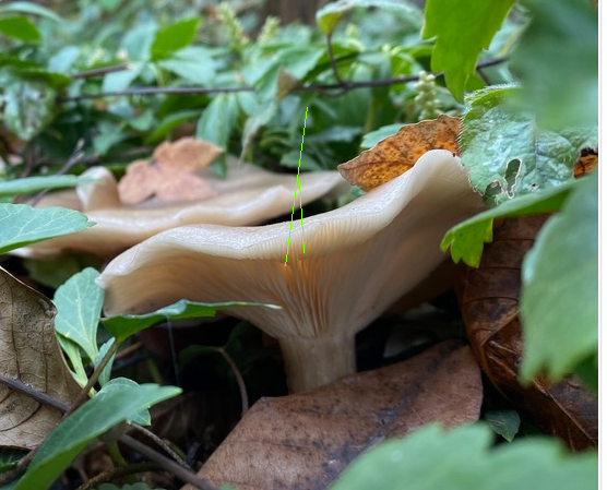 I has similarities with Megacollybia platyphylla