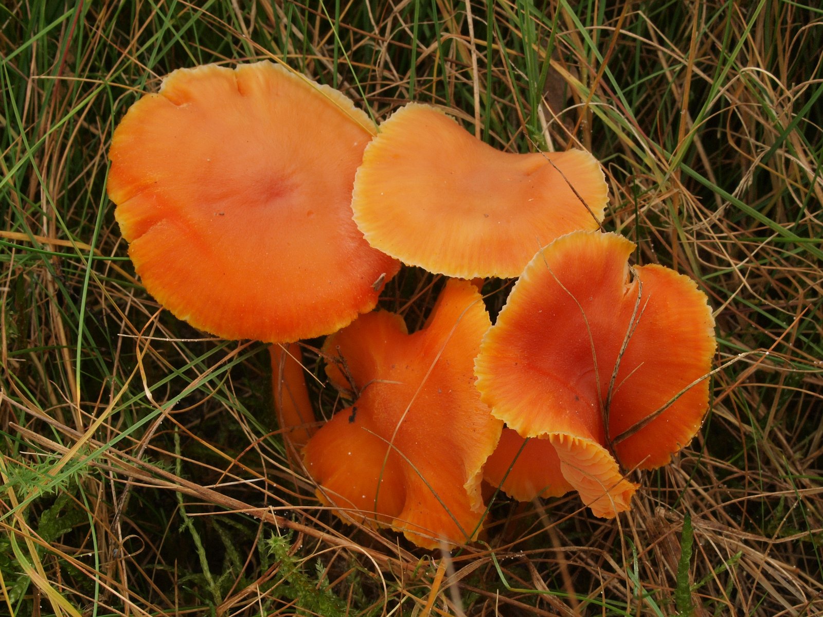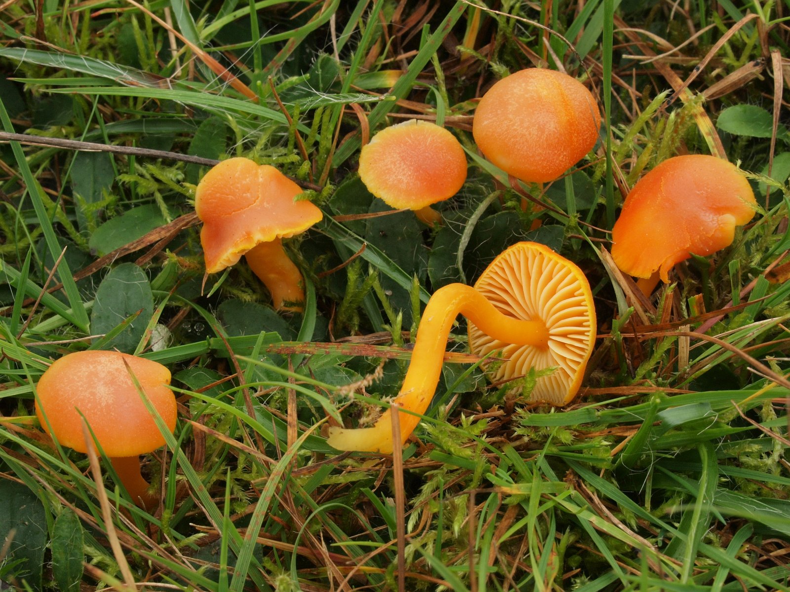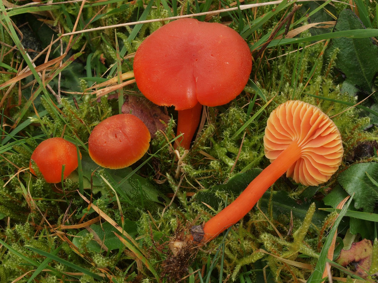 Der Mennigrote Saftling (Hygrocybe miniata) war erfreulich häufig und zeigte seine variablen Farben