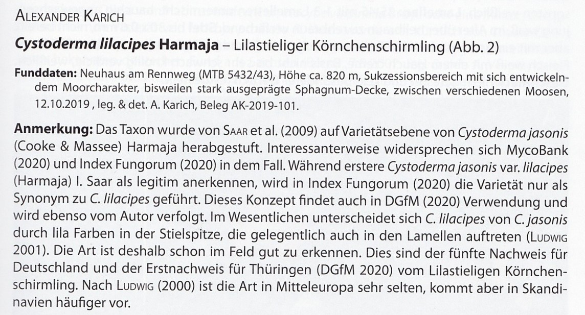Lilastieliger Körnchenschirmling (Cystoderma lilacipes)