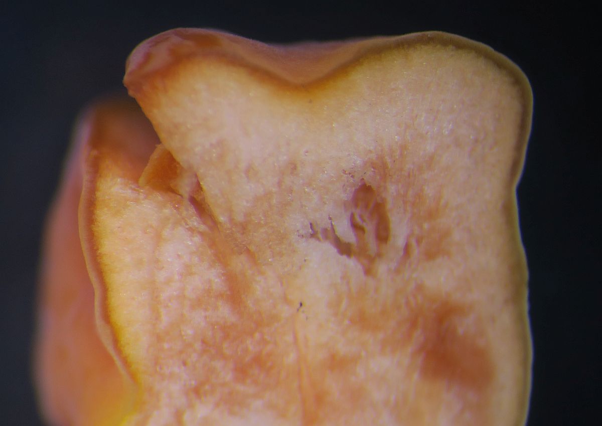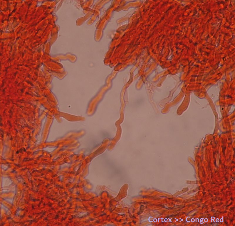 Yes, I expect the hymenium to be in the outer layer. I have not dried 2 specimens so I can do this test but remember that the hymenium is not developed and we might have false negative J test. To be continued .... thanks for your help - much obliged (and applies to all members who have contributed on this coral-lichen thing!)